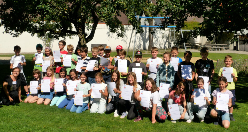 Groß war die Freude der Kinder, als sie aus der Hand der Akademieleiterin Geli Zimmermann ihre höchst verdienten Zertifikate überreicht bekamen. Geli Zimmermann bedankte sich ganz besonders bei den Dozentinnen und Dozenten und beim Helferteam, das auch für eine gute Verpflegung in der Mittagspause gesorgt hatte. Das Kursangebot dauerte täglich bis 15.30 Uhr.