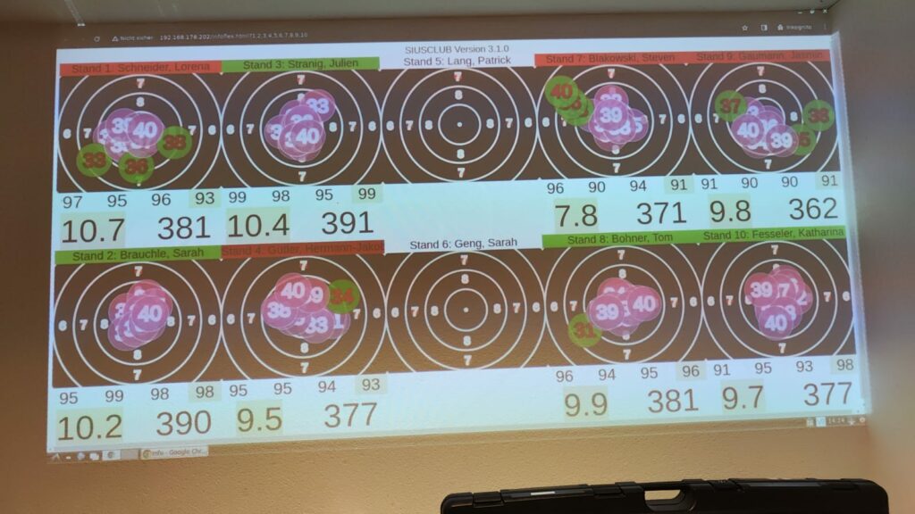 Auf Position fünf konnte sich Katharina Fesseler ebenfalls klar mit 377 : 362 Ringen durchsetzen. Die VSG ging somit mit 3 : 1 in Führung. Auf Position drei machte es Sarah Geng noch einmal spannend. Geng und Ihr Gegner, Patrick Lang erreichten beide 379 Ringe uns mussten ins Stechen. Hier zeigte Geng die besseren Nerven, sie legte eine neu vor, ihr Gegner konnte dies lediglich mit einer sieben kontern. Somit siegte die VSG mit 4 : 1 und schiebt sich auf den sechsten Tabellenplatz vor.