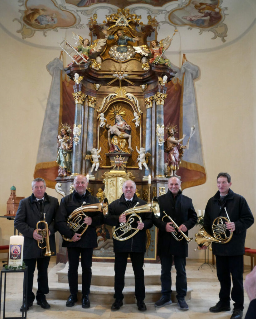 Die Bruderschaftsbläser vor dem barocken Hochaltar der Osterhofener Kapelle.