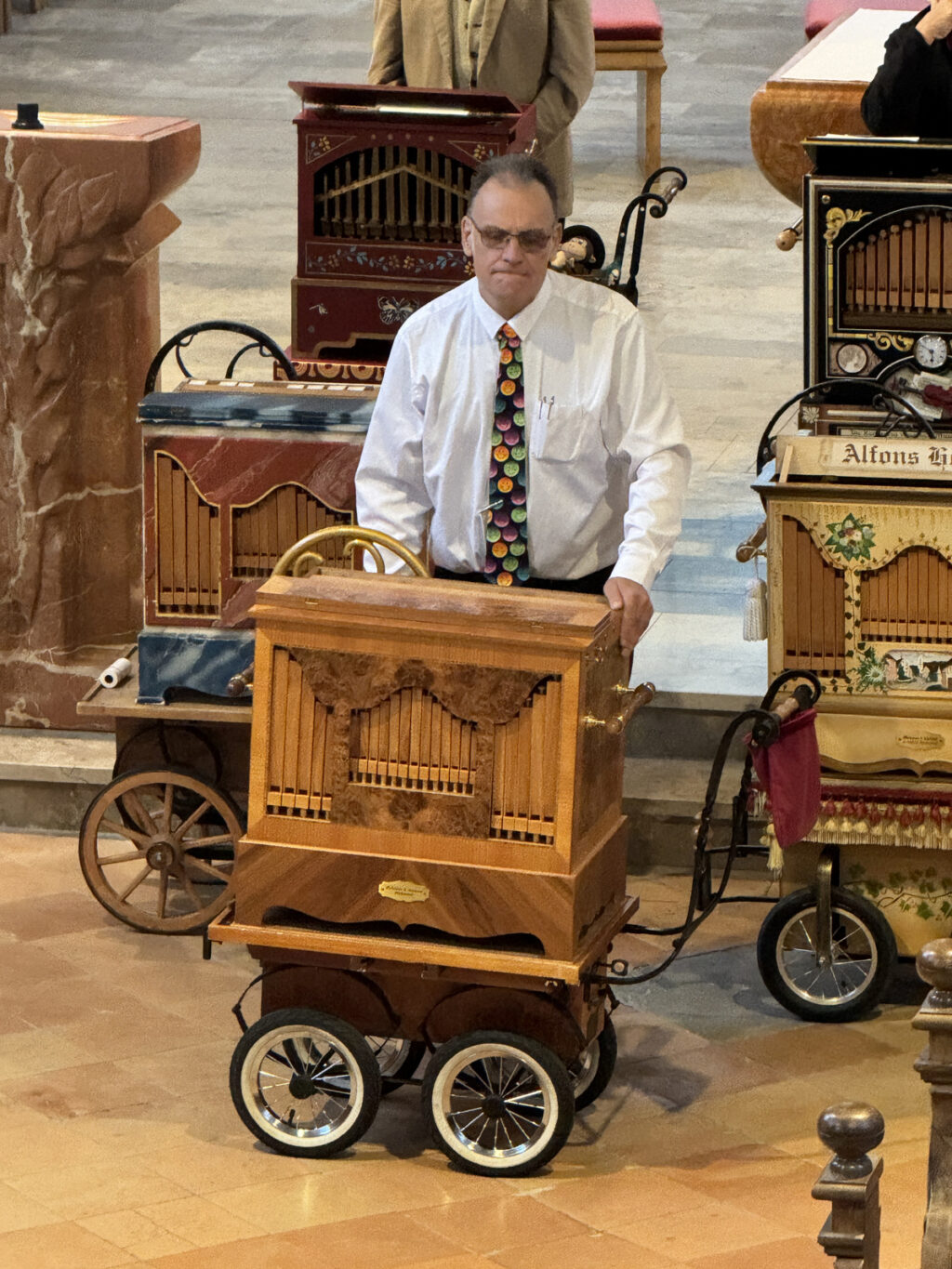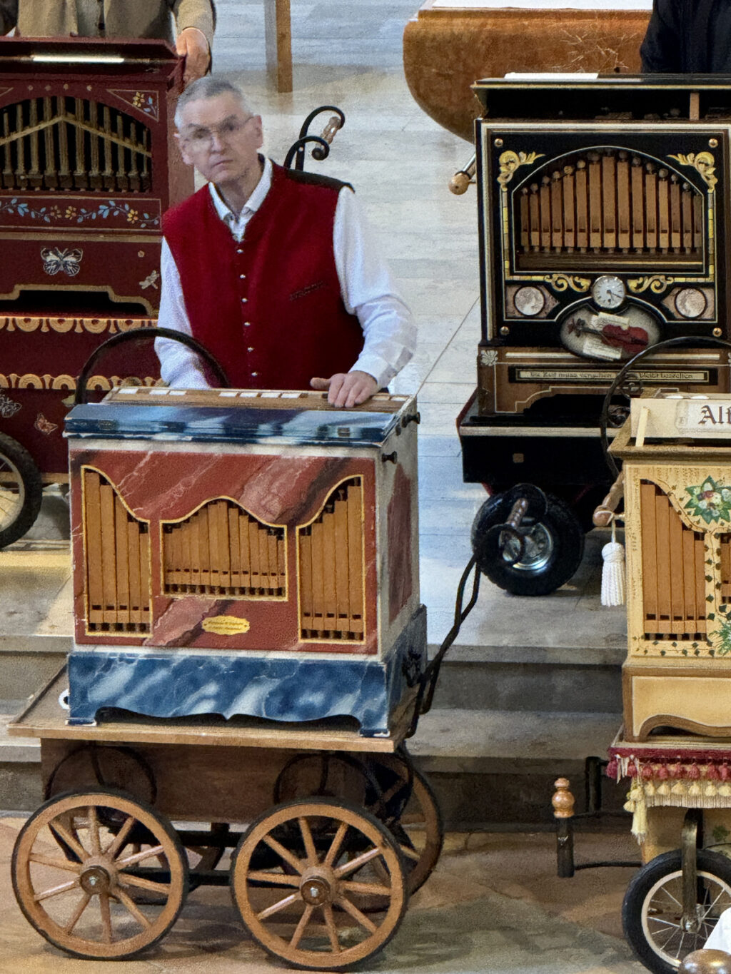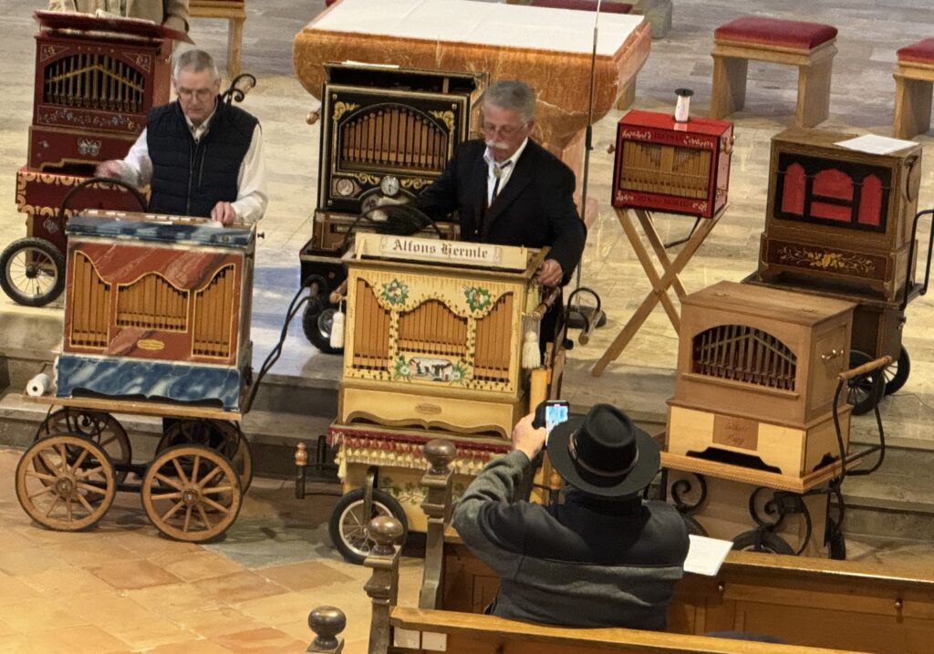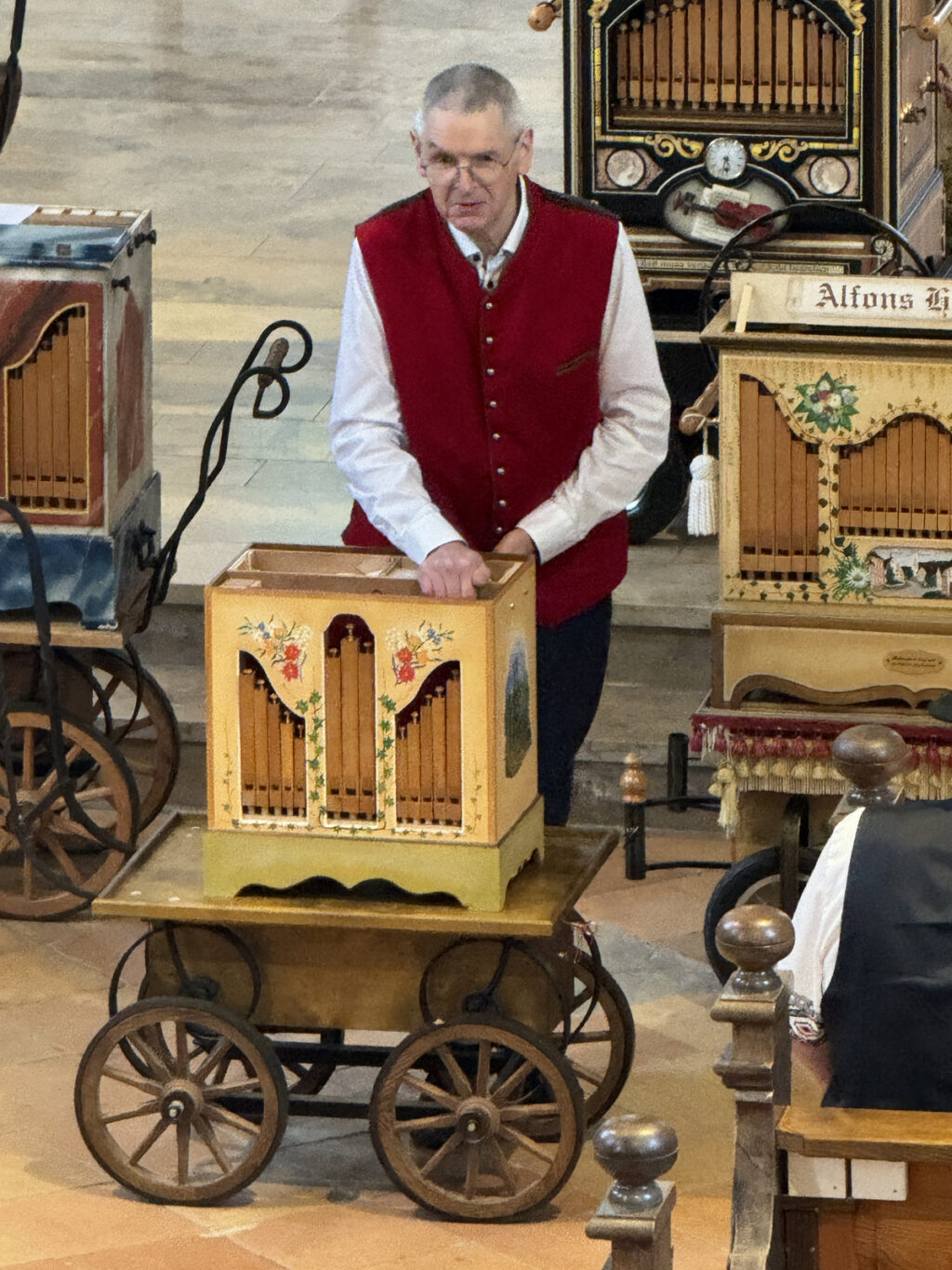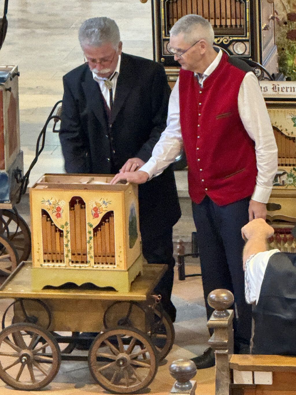Die Besucher waren recht beeindruckt von dem fast zweistündigen Konzertangebot und spendeten oft spontan Applaus. Schon im Oktober 2023 fand in der Sebastianskapelle, die damals voll besetzt war, ein solch besonderes Drehorgelkonzert statt. Initiiert und organisiert hatte auch dieses Mal den erweiterten Hörgenuss mit Orgelspiel, teilweise in Kombination mit Drehorgelvortrag, der in Haidgau beheimatete Edi Hofmann, wo er eine Musikmanufaktur leitet. Ihm war es gelungen, fünf weitere Drehorgelspieler für dieses besondere Konzert zu gewinnen.