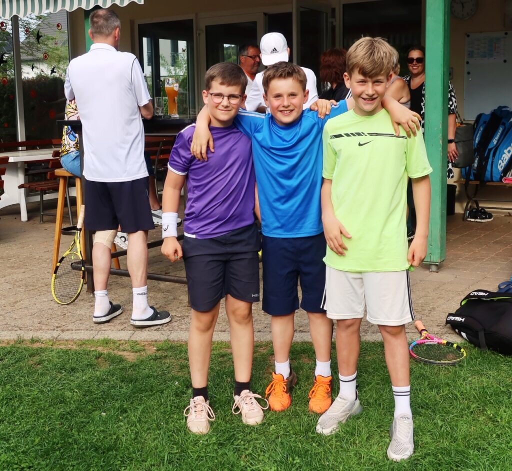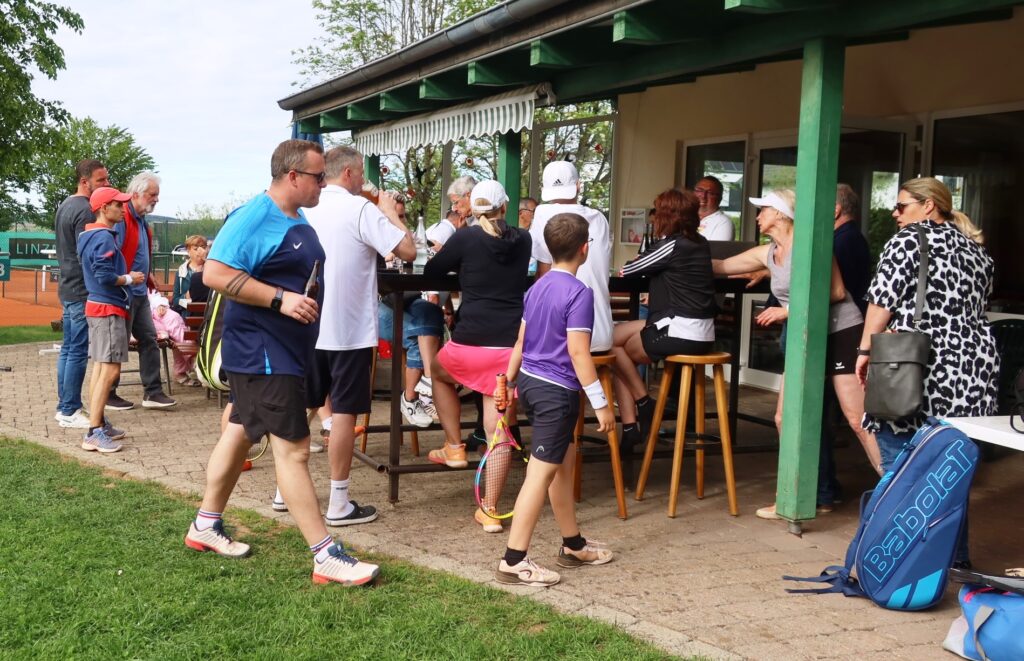 Mehrheitlich hatten sich an diesem sommerlichen Frühlingstag auf der bestens gepflegten Anlage Hobbyspielerinnen und Hobbyspieler mit großem Einsatz und erkennbarer Spielfreude am Turnier beteiligt. Die meisten Bändel (5) sicherten sich Kurt Nold und Michael Greyling. Erfreulich war, dass auch etliche Jugendliche Spaß und Freude am Sammeln von Bändeln hatten. Es gab durch die Zufalls-Auslosungen Paarungen von Vater mit Sohn, aber auch Vater gegen Sohn.
