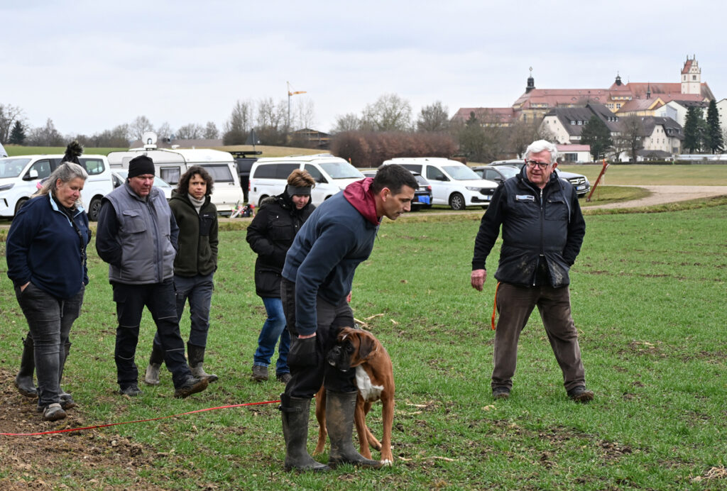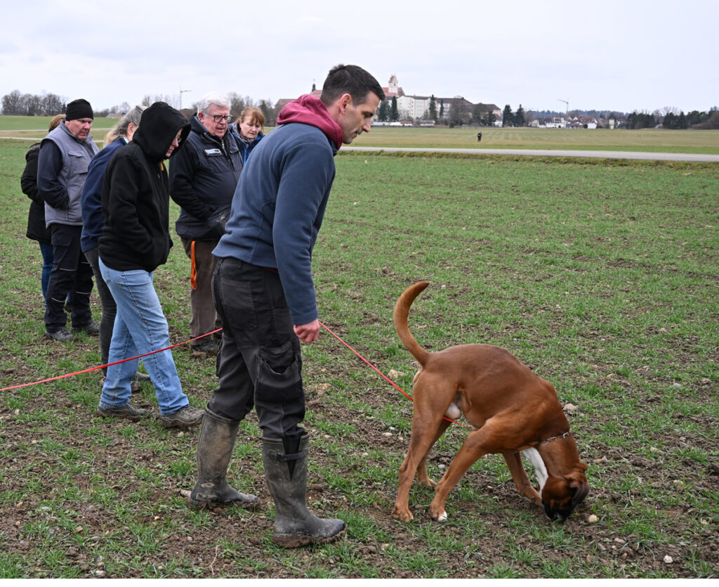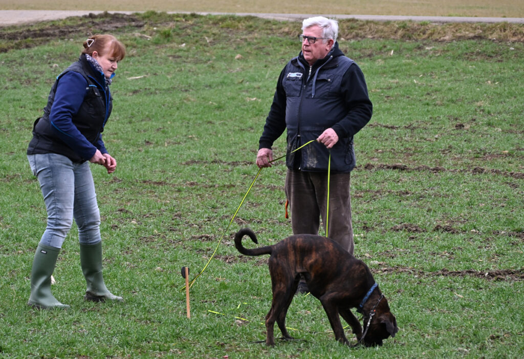 Bad Waldsee – Die Landesgruppe Baden-Württemberg des Boxerklubs hat am 1. März zum Fährten-Workshop auf den Hundeplatz des Vereins Freunde der Boxerhunde Reute e. V. (Boxerklub Gruppe Ravensburg) eingeladen. 19 Boxer und Airedale mit ihren Hundesportlerinnen / Hundesportlern bekamen jeweils mindestens zwei Übungseinheiten mit Klaus Senghaas als Trainer und Daniel Theurer als Co-Trainer. Beide sind Fährtenexperten, der Workshop-Leiter Klaus Senghaas (unser Leistungsrichter Herbstprüfung), mehrfacher Teilnehmer bei Deutschen Meisterschaften im Fährten und Daniel Theurer von unserem Verein wurde schon Deutscher Meister im Fährten.