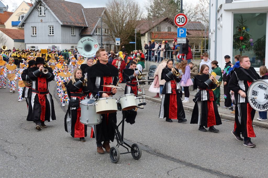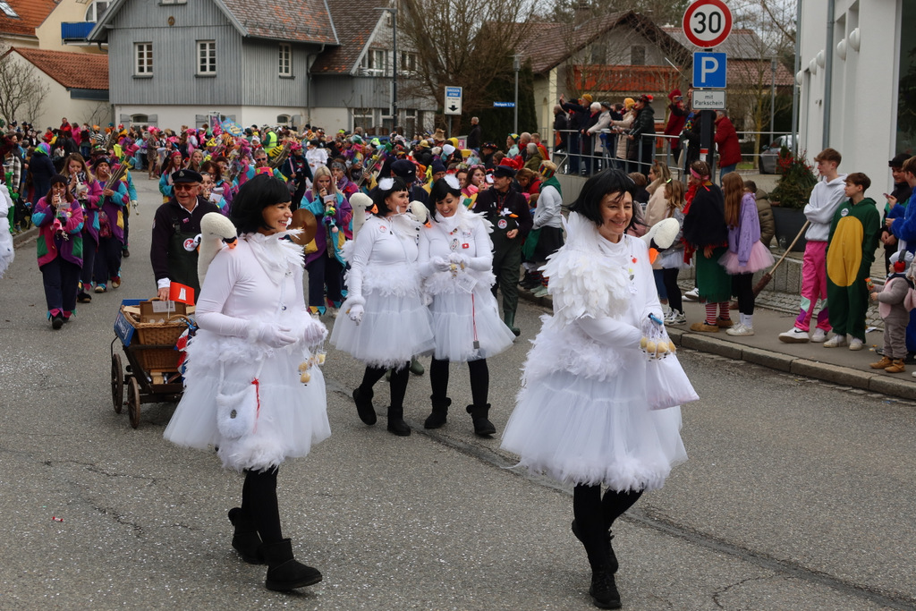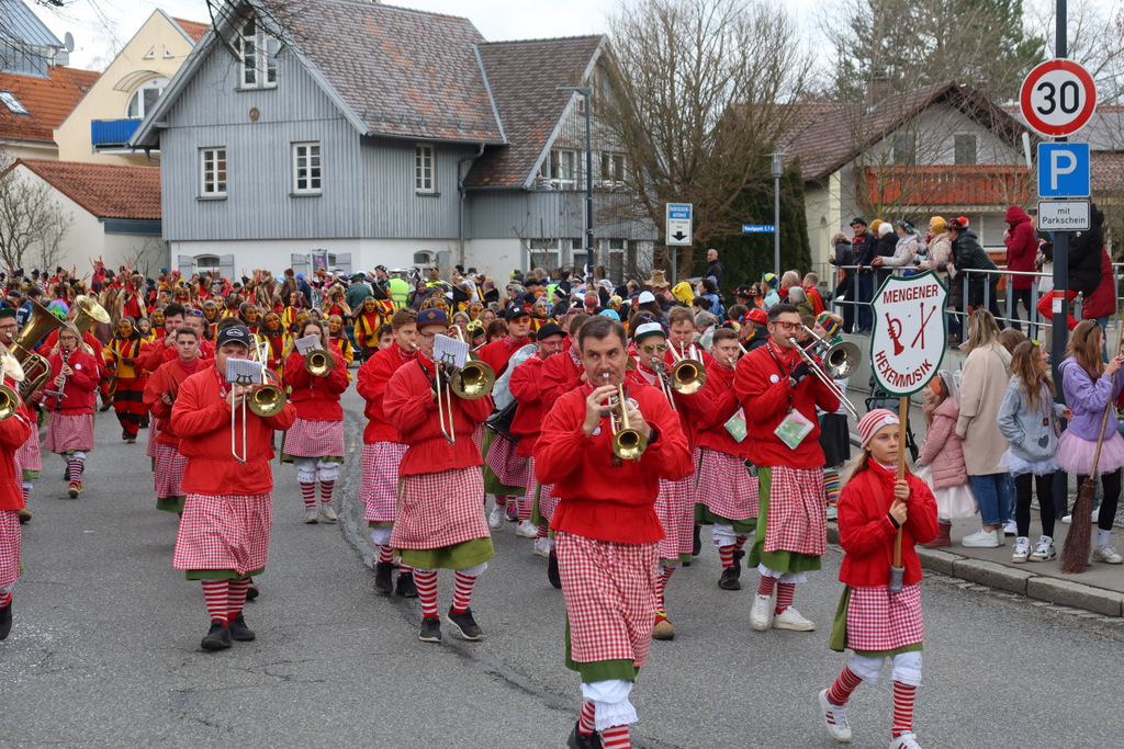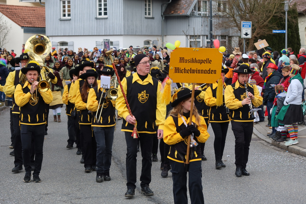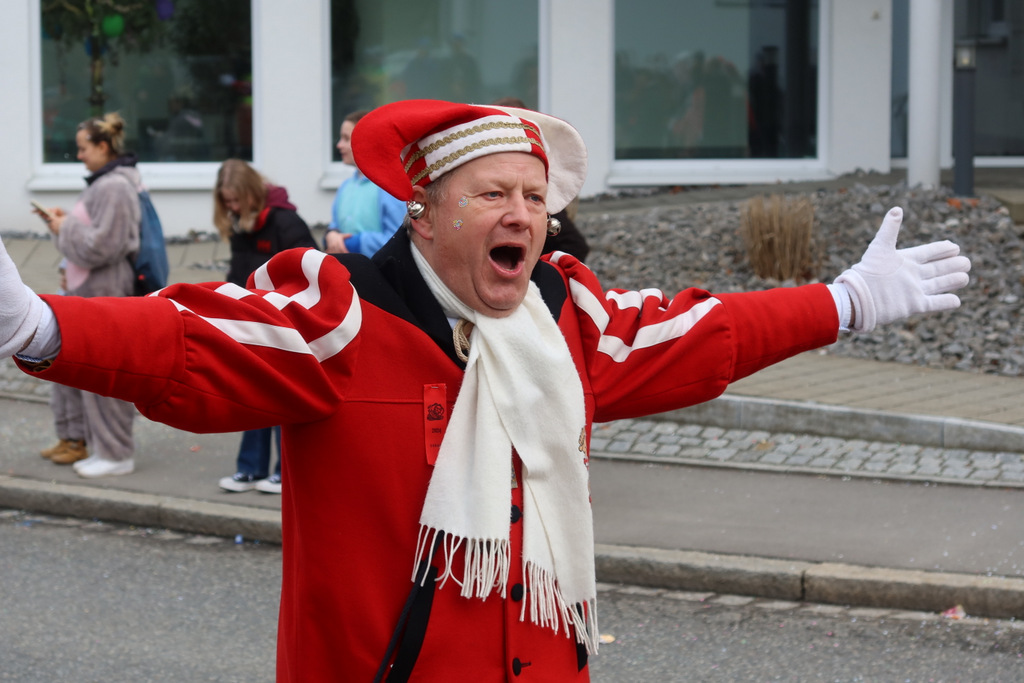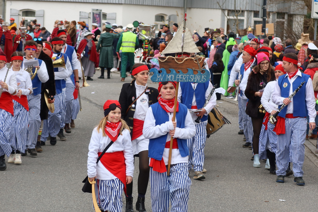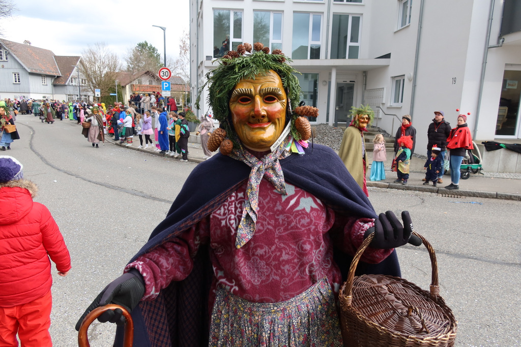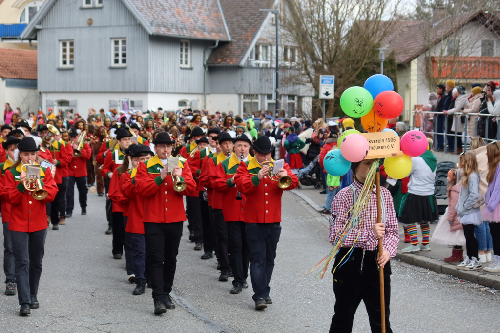 Auffallend viele Maskenträgerinnen und Maskenträger der hiesigen wie auch der befreundeten Zünfte beteiligten sich am Umzug. Auch erfreulich viele närrische Gruppierungen aus der Stadt glänzten nicht nur durch die Buntheit der Kostüme, sondern durch ihr närrisches Tun mit viel Bewegungsfreude und kräftigen AHA-Rufen. Allseits erkennbar war die freundliche, frohmachende Zuwendung zu all den Menschen, ob groß oder klein, an derUmzugsstrecke.