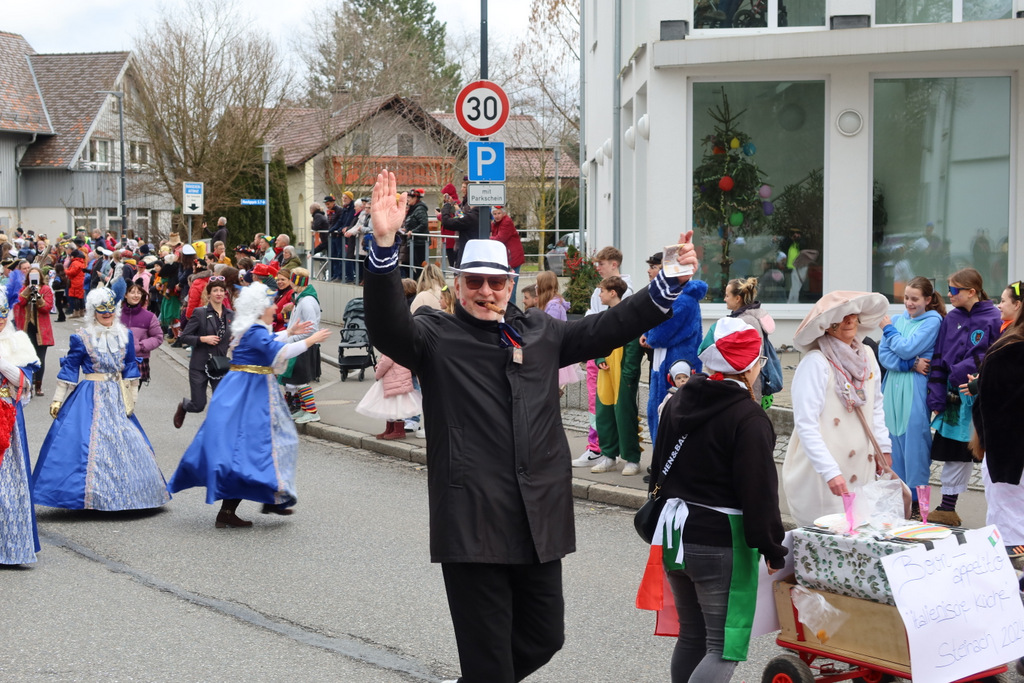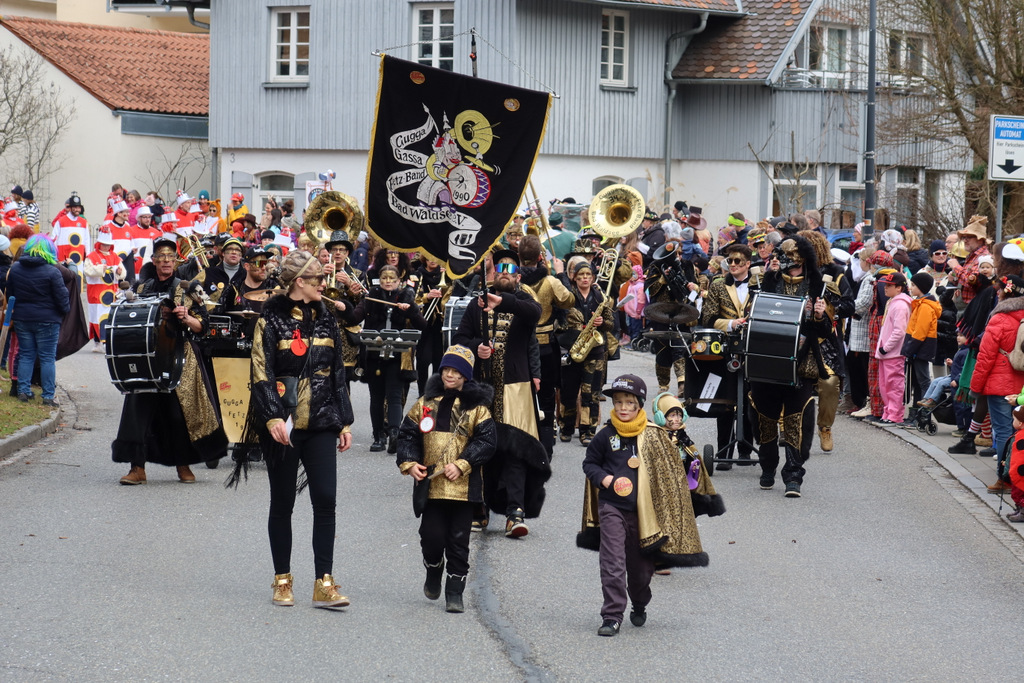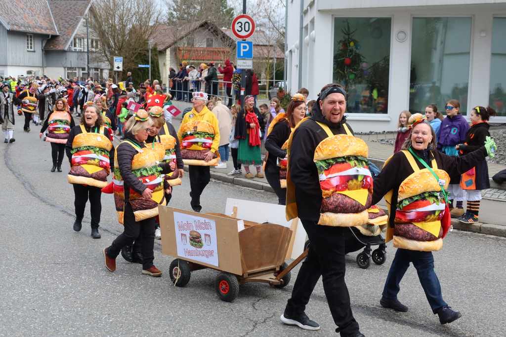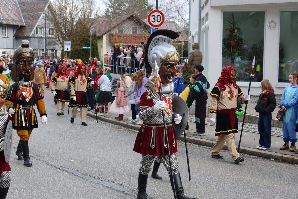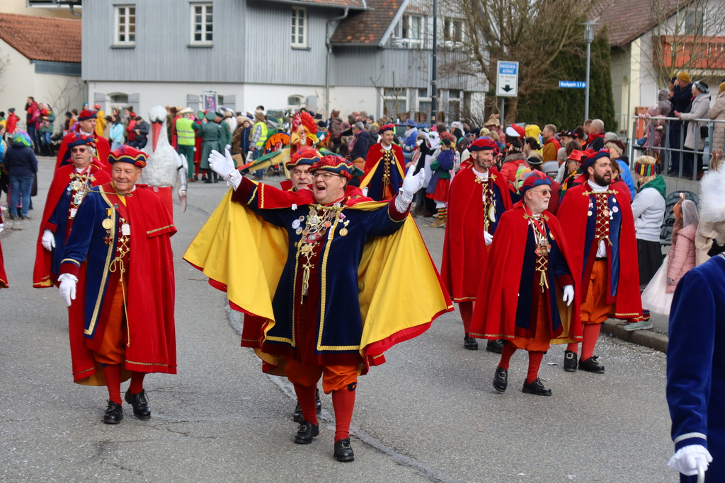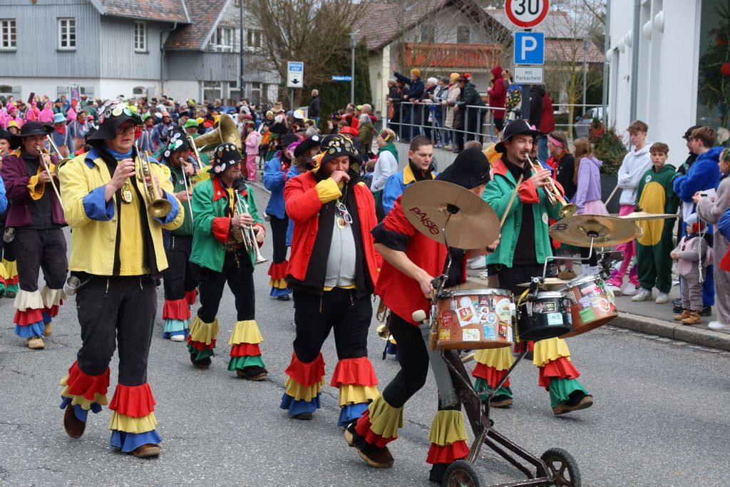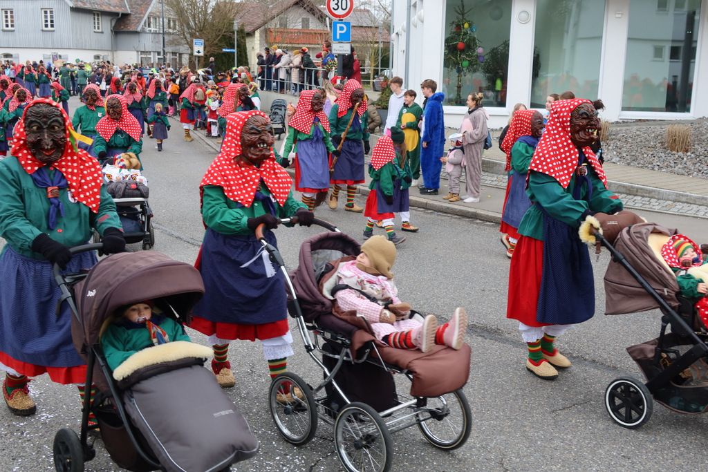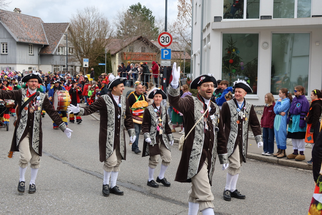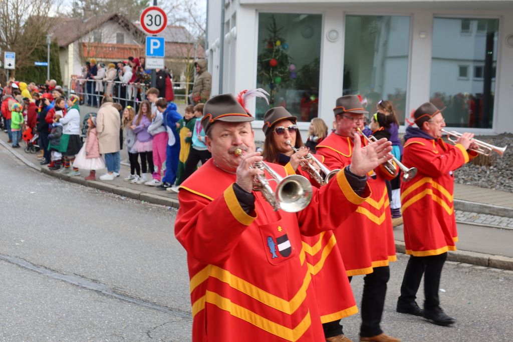 Auffallend viele Maskenträgerinnen und Maskenträger der hiesigen wie auch der befreundeten Zünfte beteiligten sich am Umzug. Auch erfreulich viele närrische Gruppierungen aus der Stadt glänzten nicht nur durch die Buntheit der Kostüme, sondern durch ihr närrisches Tun mit viel Bewegungsfreude und kräftigen AHA-Rufen. Allseits erkennbar war die freundliche, frohmachende Zuwendung zu all den Menschen, ob groß oder klein, an derUmzugsstrecke.