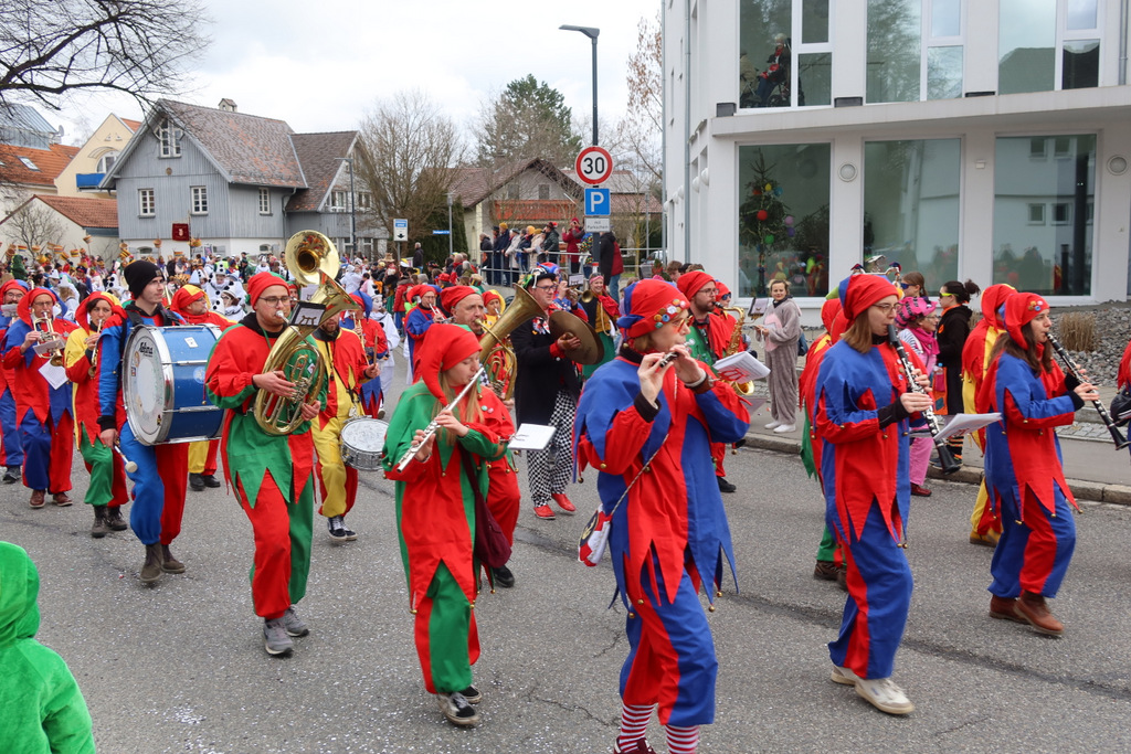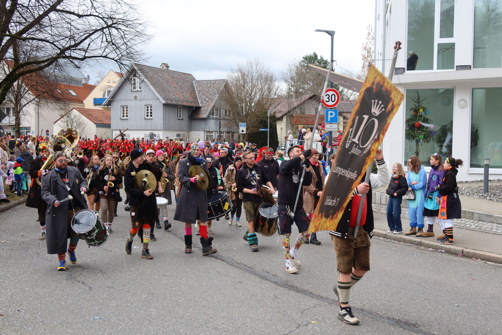 Aufgefallen war beim bunten Treiben am Fasnetsmontig während des Umzugs, dass selbst auswärtigen Narren das Waldseer „AHA“ über die Lippen kam. Natürlich erklang mehrheitlich der eigene Ruf aus den befreundeten Zünften der Donaustädte, zu denen einst auch Waldsee gehörte, wie „Kügele-Hoi“ (Ehingen), „Gole“ (Riedlingen), „Doraus, detnaus, bei d´r alte Linda naus“ (Bad Saulgau). Die Plätzlerzunft Altdorf-Weingarten mit ihrem Ruf „Breisgau-Ofenloch“ imponierte mit vielfach gezeigtem Karpatschenschnellen. Die allseits verbreitete Stimmung war klasse. Einen wesentlichen Beitag dazu lieferten 23 Musikkapellen und Musikgruppen.
