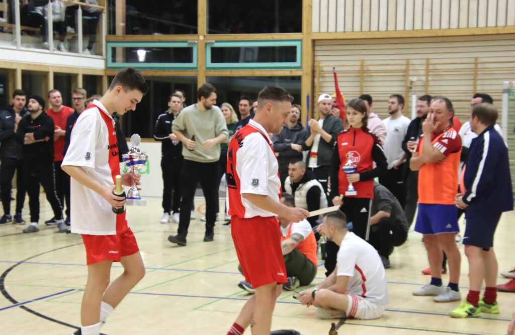In Halbfinale setzten sich Johnny’s United nach dramatischem Neunmeterschießen gegen Turnierneuling FC Polonia Ravensburg durch, im anderen Halbfinale behielt der FC Gudrun denkbar knapp mit 1:0 die Oberhand gegen das starke Team von Farnybahce. Im Endspiel drehte der dreimalige Turniersieger FC Gudrun dann richtig auf und triumphierte nach einem souveränen Finalsieg verdientermaßen. Neben Pokal bekam die Siegermannschaft auch noch einen großzügigen Wertgutschein für das Czardas in Bad Waldsee, den Inhaber Tuncay Caba inklusive Sekt seit Jahren dankenswerterweise großzügig für das Reutener Hallenturnier sponsert. Im Czardas fand dann nach der Siegerehrung auch die “Halbzeit-Party” beim Hinder-Cup 2024 statt.