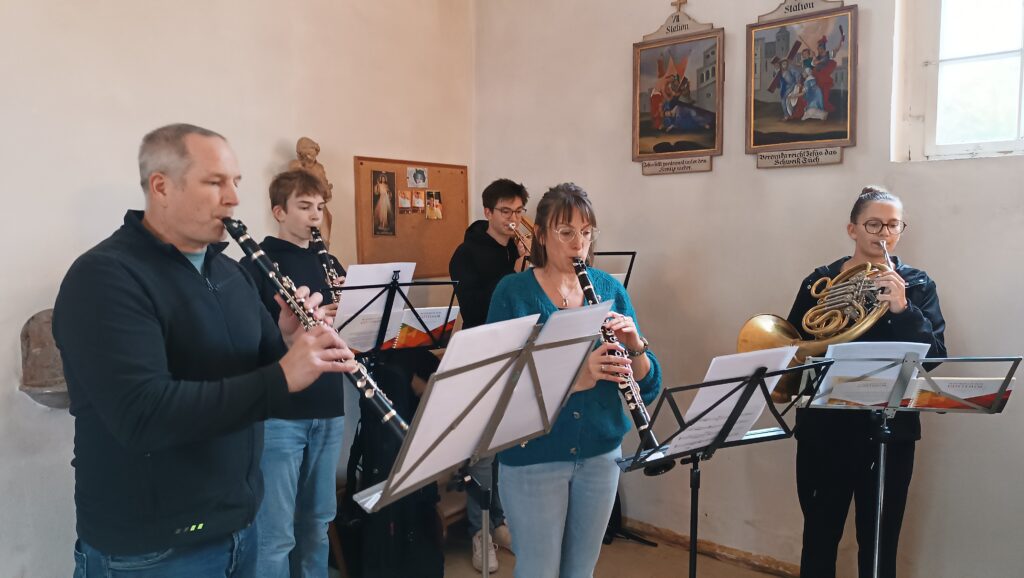 Besonderen Beifall gab es am Schluss für die musikalische Gestaltung der Familie Maucher, Gaisbeuren. Mit Posaune, Horn und drei Klarinetten brachten sie neben der Liedbegleitung auch besondere kirchenmusikalische Werke zu Gehör. Gerne legte die Besucher für die Erhaltung des Dorfmittelpunktes Geld in das Spendenkörbchen.