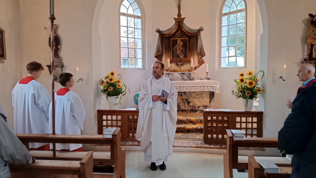 Neben Gläubigen aus Kümmerazhofen kamen auch viele Personen aus der gesamten Seelsorgeeinheit zu diesem festlichen Gottesdienst. Kapellenmesner Josef Schmid begrüßte nach dem gemeinsam gebeteten „Engel des Herrn“ die Besucher. Pfarrer Stefan Werner freute sich bei seiner Begrüßung besonders, dass Familie Maucher, Gaisbeuren die musikalische Gestaltung dieses Gottesdienstes übernahm. Karl Eugen Ott brachte als Lektor die Tageslesung zu Gehör. Viel Lob gab es für den herrlichen Blumenschmuck in der Kirche.