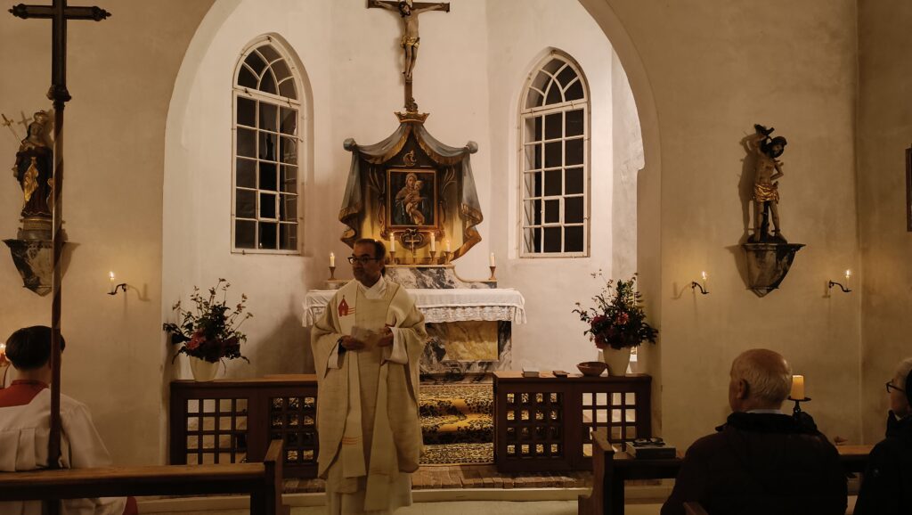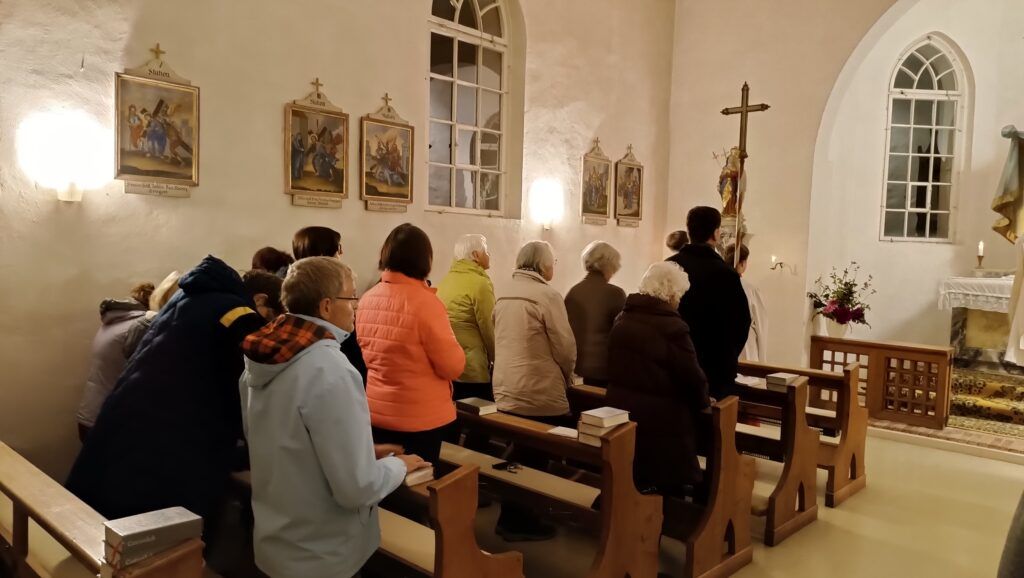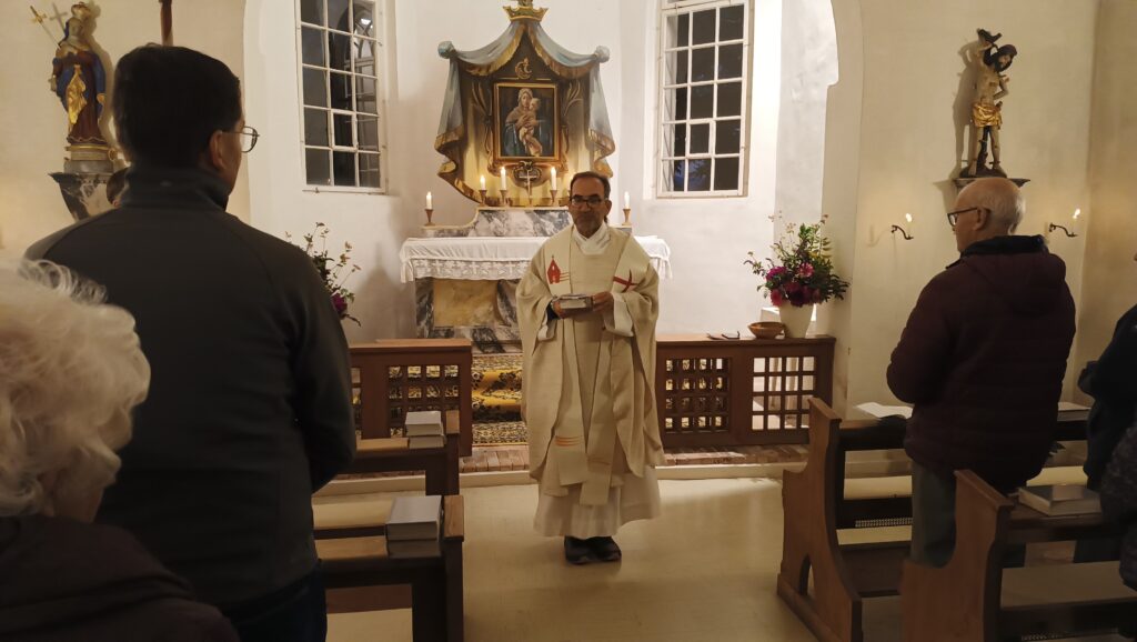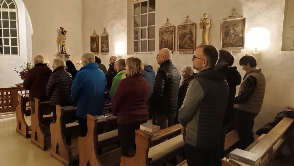 Etwa 30 Gläubige aus Kümmerazhofen, aber auch Personen aus der Seelsorgeeinheit Bad Waldsee, kamen zum Abendgottesdienst. Kapellenmesner Josef Schmid eröffnete mit dem gemeinsam gebeteten „Engel des Herrn“. Pfarrer Stefan Werner freute sich ob einem zahlreichen Besuch, auch Gäste aus Bad Schussenried, Weißenau und Kißlegg versammelten sich. Matthias Ortner brachte als Lektor die Tageslesung zu Gehör. Angela Brändle begleitete mit ihrer Gitarre ausgewähltes Liedgut.