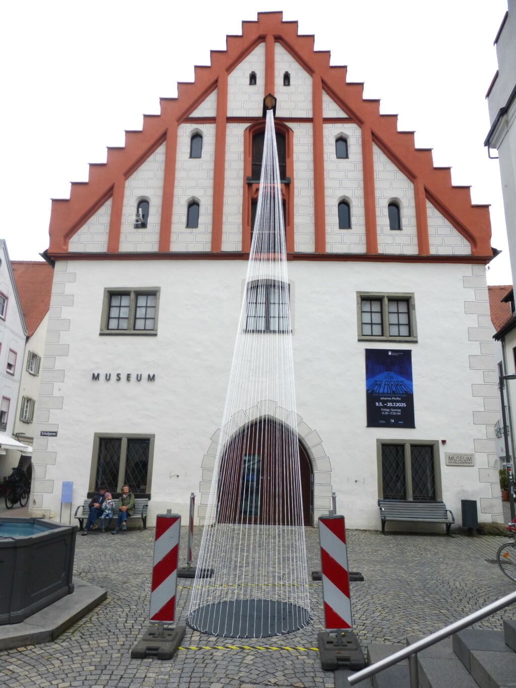 Aus einem Speicher des Korns ist mit der Zeit jetzt ein Speicher des Wissens und der Kunst geworden, der Austausch von außen nach innen und von innen nach außen wird symbolisch dargestellt. Johannes Pfeiffer und der Museums- und Heimatverein hätten die Seilinstallation gern länger belassen. Doch das Altstadt- und Seenachtsfest naht und der öffentliche Platz vor dem Kornhaus wird dann anderweitig genutzt. Der Künstler wird die Installation daher am Montag, 21. Juli abbauen.