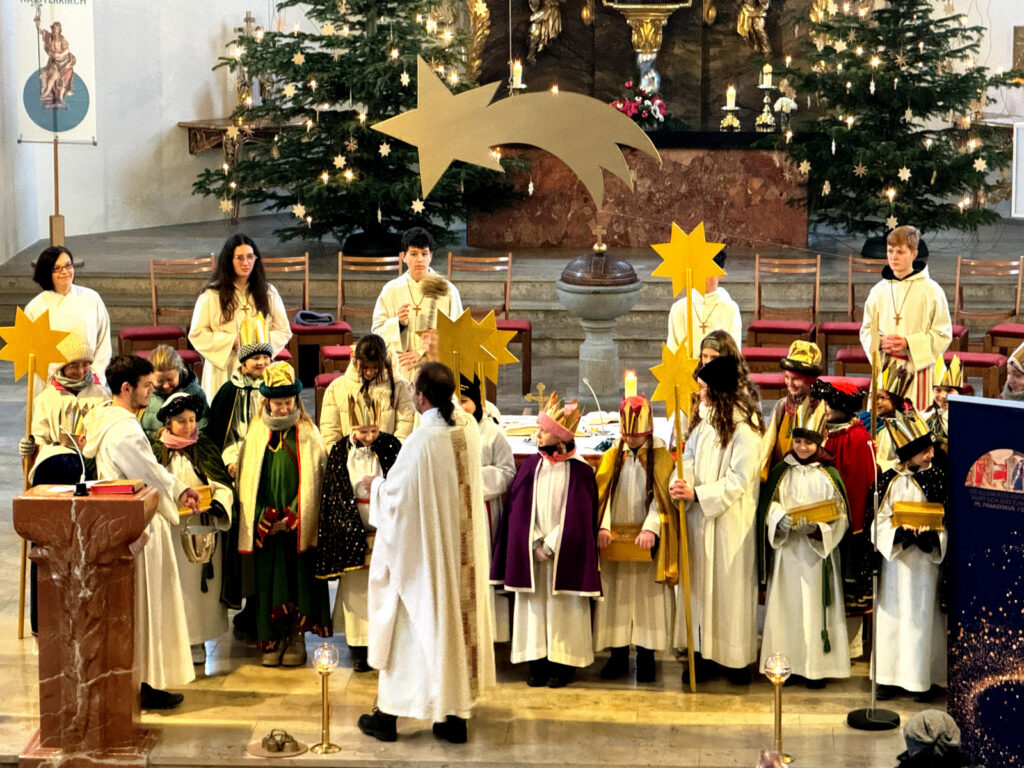 Pfarrer Stefan Werner erbat dann auch den Segen Gottes für die Sternsinger, die Menschen im Gottesdienst und in all den Häusern, die am Dreikönigstag aufgesucht wurden. Gesegnet wurden auch Kreide, Weihrauch und auch das Dreikönigswasser.