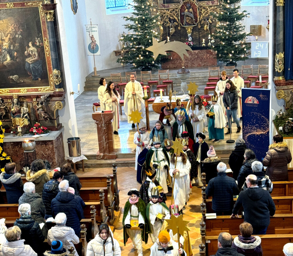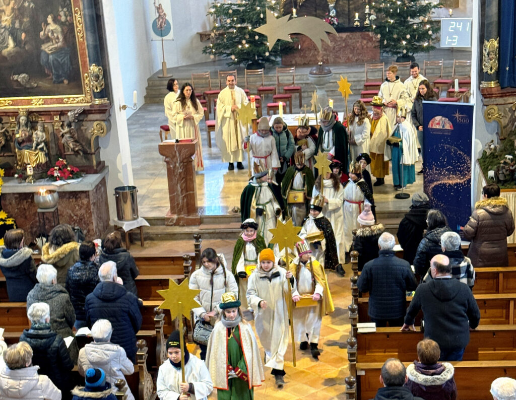 Dieses Mal macht die Aktion deutlich, dass Mensch und Natur am Amazonas, aber auch hier bei uns, eine Einheit bilden sollten. Die hiesigen 30 Sternsinger wurden ermutigt, sich gemeinsam mit Gleichaltrigen aller Kontinente als Botschafter des Friedens zu engagieren. Zelebrant dieses festlichen Gottesdienstes war Pfarrer Stefan Werner. Für die feierliche Umrahmung mit Orgelklängen sorgte Leo Straßner, der auch den Gemeindegesang wohltuend unterstützte.