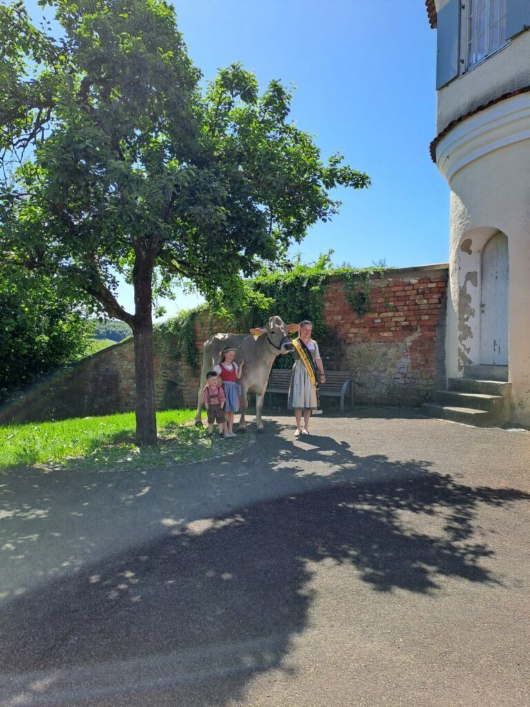 Bei bestem Wetter wurden in verschiedenen Ecken der Anlage wunderschöne Bilder gemacht – teilweise sogar mit Blick auf die Reichsabtei von Rot a.d. Rot. Die fotografierten Tiere stammen aus dem Betrieb von Daniel Kling (Rot a.d. Rot). Von der Jungkuh Zapzarap mit dem GZW 138 und dem Vater Piccard sind aktuell zwei Söhne in der RBW-Aufzuchtstation – die Väter der Kälber sind Valps und Barolo. Das Kalb auf dem Flyer ist eine Tochter von Vancouver. Unser besonderer Dank geht an die Gemeine Rot a.d. Rot, die uns den Gemeindepark als Kulisse zur Verfügung stellte. Außerdem möchten wir uns bei unserer Fotografin Lena Guggemos vom Schauteam Guggemos für die tollen Bilder bedanken.