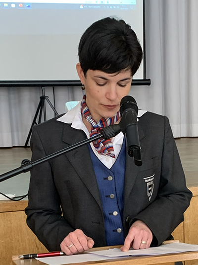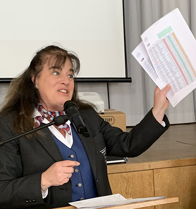 Theresa Längle (Dritte Vorsitzemde) erläuterte die vorgesehenen Satzungsänderungen. Dabei ging es um eine Neustrukturierung der Zuständigkeiten und um die Vertretungsfunktionen.