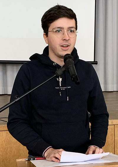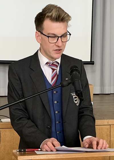 Lukas Lerner (Bild), Leiter der Jugendabteilung, berichtete über positive Entwicklungen in der Nachwuchsarbeit (zwei neue Flötengruppen) und über hervorragende Ergebnisse von Jungmusikern bei D1-Prüfungen bzw. bei „Jugend musiziert“, wo beispielsweise Pius Bucher 24 von 25 möglichen Punkten erreichen konnte. Absolventen der D1-Prüfung kommen sofort ins Jugendblasorchester unter der Leitung von Alexander Dreher, das auch von der Jugendmusikschule getragen wird. Insbesondere über die Zusammenarbeit mit der JMS freute sich Lukas Lerner.