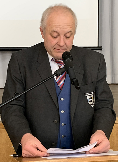 OB Henne (Bild) lobte in seinem Grußwort den Fleiß und die Sparsamkeit des Musikvereins. Er begrüßte die Kooperation zwischen JMS und Stadtkapelle und das Miteinander zwischen Stadt und Kapelle. Er würdigte das praktizierte Ehrenamt der Musiker und versprach, am Thema Proberaum dranzubleiben! Anschließend nahm er die Entlastungen vor, die alle einstimmig ausfielen. Gapp konnte es sich nicht verkneifen, seinem Dirigenten Joe (Weiss) unseren OB ans Herz zu legen, der ja ein ausgezeichneter Saxofonist sei.