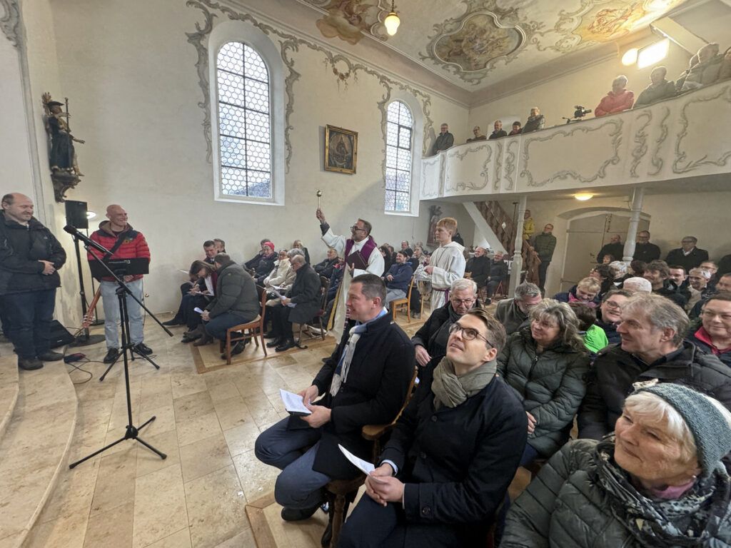In der hell strahlenden, total sanierten Kleinkirche waren Stühle für die geladenen Gäste zusammengetragen worden. Pfarrer Stefan Werner, ein engagierter Befürworter der Sanierungsmaßnahmen, leitete den Gottesdienst. Das passende Liedgut wurde von den bisherigen Mitgliedern des Haisterkircher Kirchenchors feierlich vorgetragen. Die Leitung des eigentlich nicht mehr aktiven Chors hatte der langjährige Dirigent Karsten Maluck übernommen. Schade, dass diese Chorgemeinschaft jetzt nur anlässlich dieses besonderen Ereignisses geprobt und gesungen hat. Pfarrer Stefan Werner erinnerte daran, mit Hinweis auf die vielen neu vergoldeten Engelsfiguren am wunderschönen barocken Altar, dass bekanntlich Engel die Türöffner zur Liebe Gottes sind. Er erbat den Segen Gottes für alle Menschen. Rolf Heber, der Gewählte Vorsitzende des Kirchengemeinderates Haisterkirch, zog Bilanz über die Restaurierungsgeschichte und bedankte sich bei den anwesenden Vertretern der Kreissparkasse Ravensburg und bei der Volksbank Allgäu-Oberschwaben für großzügige Unterstützung. Auch die Kirchengemeinde trug ihr Scherflein zur so gelungenen Maßnahme bei.