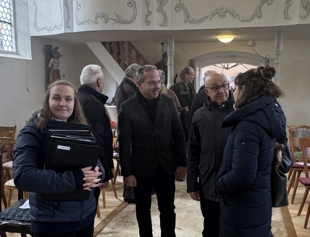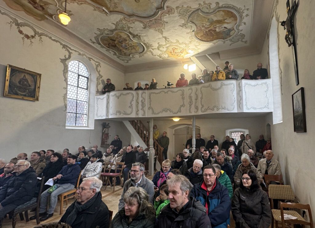 Heber erinnerte daran, dass jede 10-Euro-Spende zugunsten der Sanierung Kapelle Osterhofen bis 31. 12. 2025 an die VBAO von der Bank verdoppelt wird.