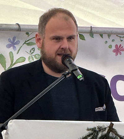 Das erste Grußwort richtete der Vorsitzende des Fördervereins Kapelle Osterhofen Markus Schmid (Bild) an die Gäste. Ihm war es deutlich anzumerken, wie glücklich er ist, dass diese Wiedereröffnung mit Hilfe so vieler Unterstützer zum Gelingen gebracht werden konnte. Sein Dankeschön an alle, die dazu beigetragen hatten, kam aus vollem Herzen.