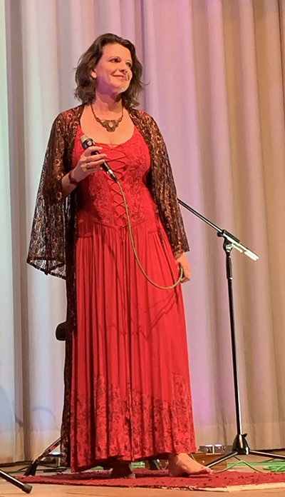 Zweifellos war mit „BrahmaVishnuMakeshvara“ bereits ein Höhepunkt erreicht. In ihrer sehr informativen Moderation erklärte Greven die in diesem indisch geprägten Titel enthaltenen Trinitäten: der schaffende, der bewahrende und der zerstörende Gott. In dieser eigentlich sehr nachdenklichen Komposition konnte gar eine Art Dreivierteltakt mit Zupfen der Violine und in allen Registern anspruchsvoller Stimme genossen werden. Recht aktuell und kompositorisch fein umgesetzt war das alte Thema Beziehungen, ob passend oder total unpassend. Harmonische Passagen wechselten mit lautschrägen Passagen, wozu auch Sprechkontakt zum Publikum gehörte. Nur live funktionieren solch spontanen Elemente, die einen Besuch dieses Konzerts intensiv aufwerten!