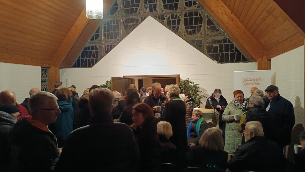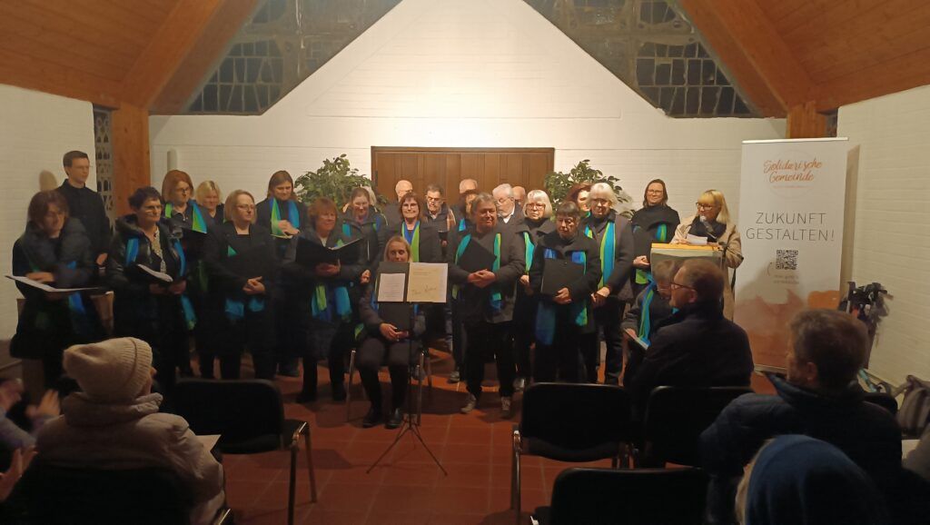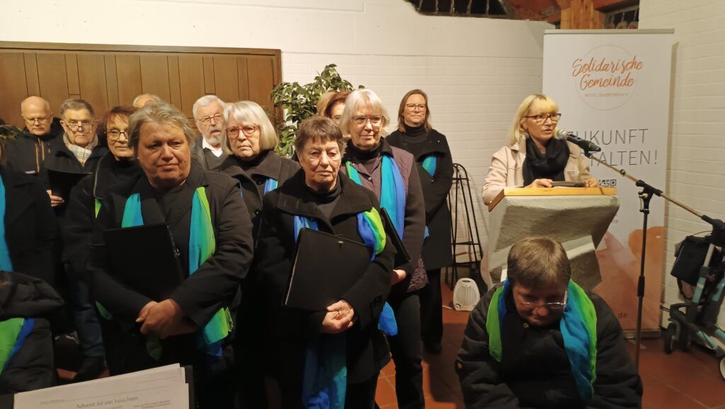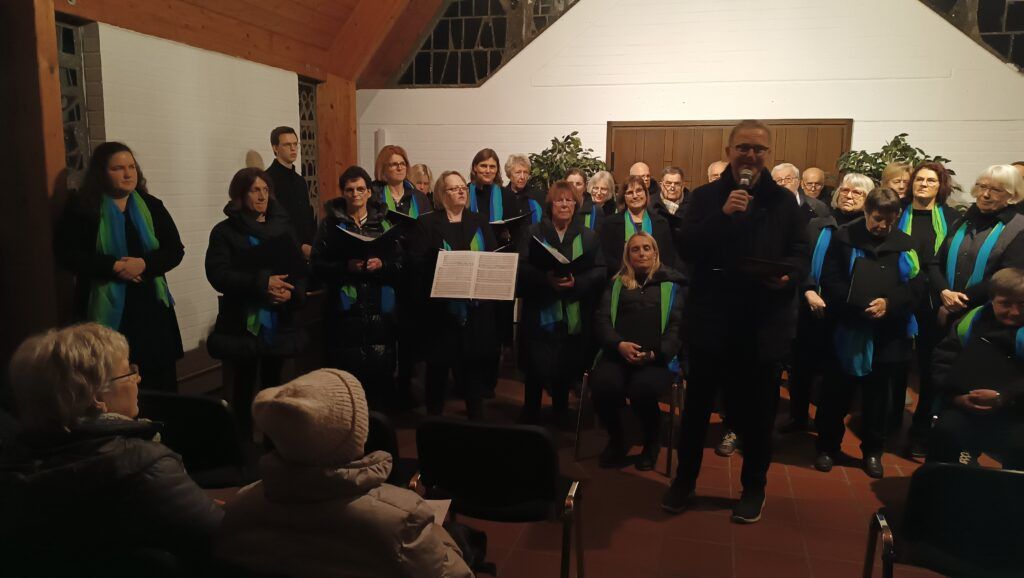 Nach einer Pause mit Glühwein, Punsch und angeregten Gesprächen sang der Chor „Joy to the World“, „Zu Bethlem über Stall“, „Weihnachtswiegenlied“ sowie die Heilig-Jahr-Hymne 2025 „Licht des Lebens“. Am Schluss stimmten alle nach großem Beifall beim Lied „Wir sagen euch an den lieben Advent“ kräftig mit ein. Nach Dankesworten von Elke Müller: „Ein unvergesslicher Abend“ ging es auf den Heimweg, nicht aber ohne vorher eine Spende für das „Frauenhaus Ravensburg“ ins Körbchen gelegt zu haben.