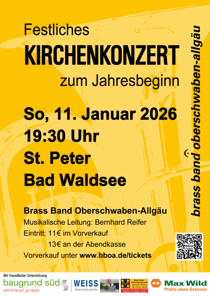 Bad Waldsee – Voller Tatendrang und abwechslungsreicher Musik im Gepäck gastiert die BBOA, die Brass Band Oberschwaben-Allgäu in bewährter Tradition am Sonntag, 11. Januar, um 19.30 Uhr, in der Stiftskirche St. Peter in Bad Waldsee.