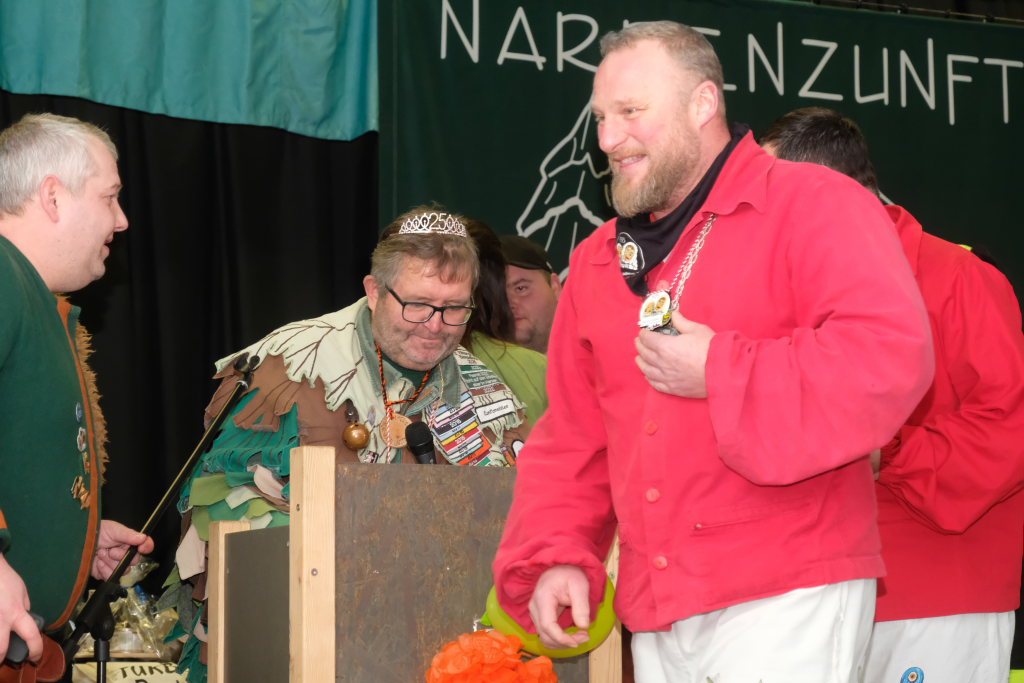 Kein Wunder, dass Zunftmeister Günter „Turbo“ Angele also beim Zunftmeisterempfang am Vormittag von den befreundeten Zünften ein Prinzessinnen-Krönchen mit 25 stilisierten Kerzen ins in dieser Zeit grauer und lichter gewordene Haupthaar gedrückt bekam.