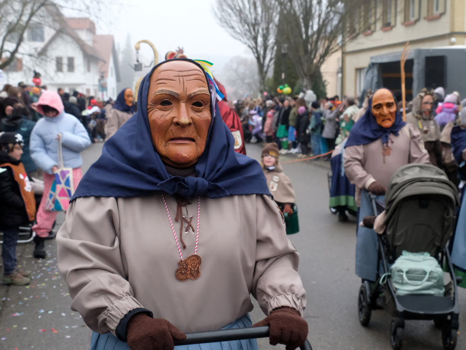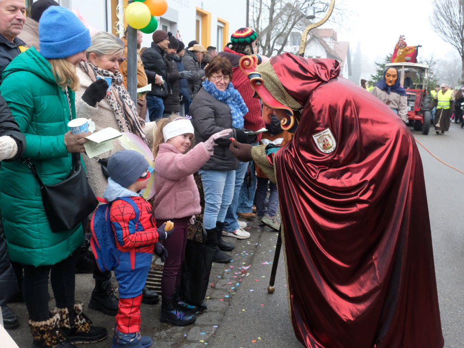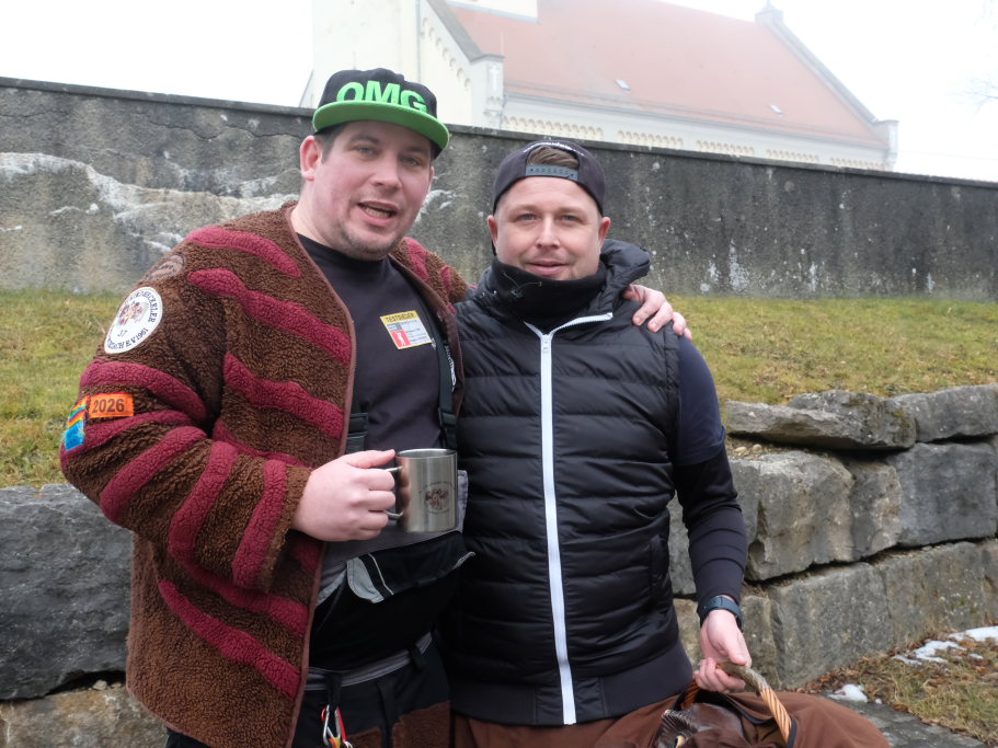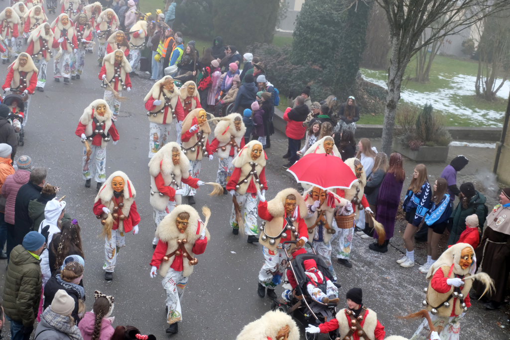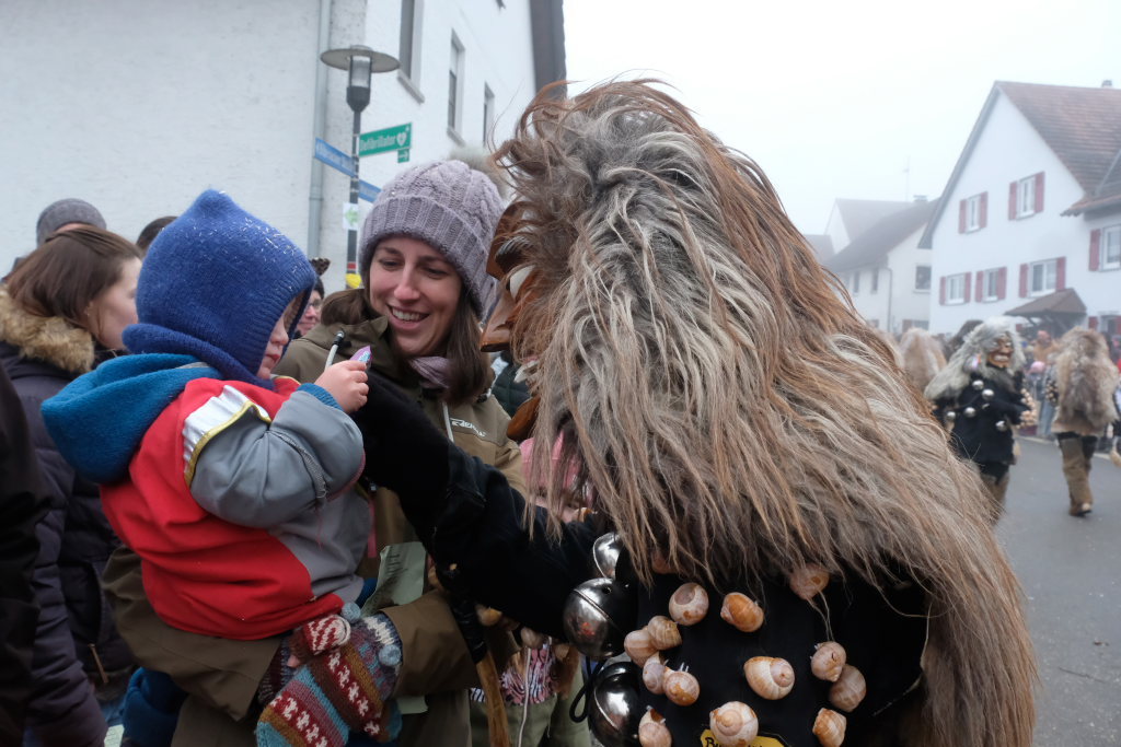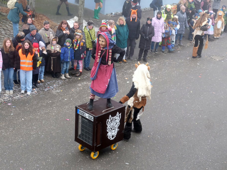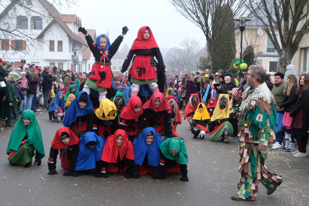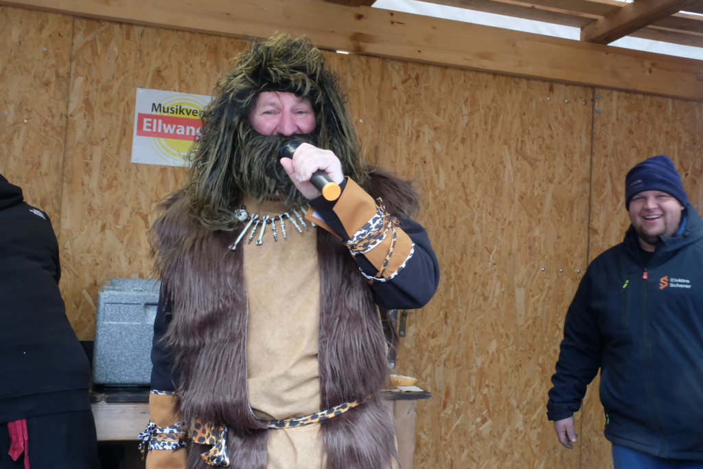 Und es gab für das „Dreamteam“ viel zu kommentieren: Etwa die riesige Narrenschar, die sich vom benachbarten Eberhardzell mit allen Masken in das kleine Dorf am Ellbach aufgemacht hatte. Egal ob schwarze Katz, Hansel oder Neideck Hexe, alle waren sie gekommen um mit den Ellwangern deren Straßenfasnet zu feiern.