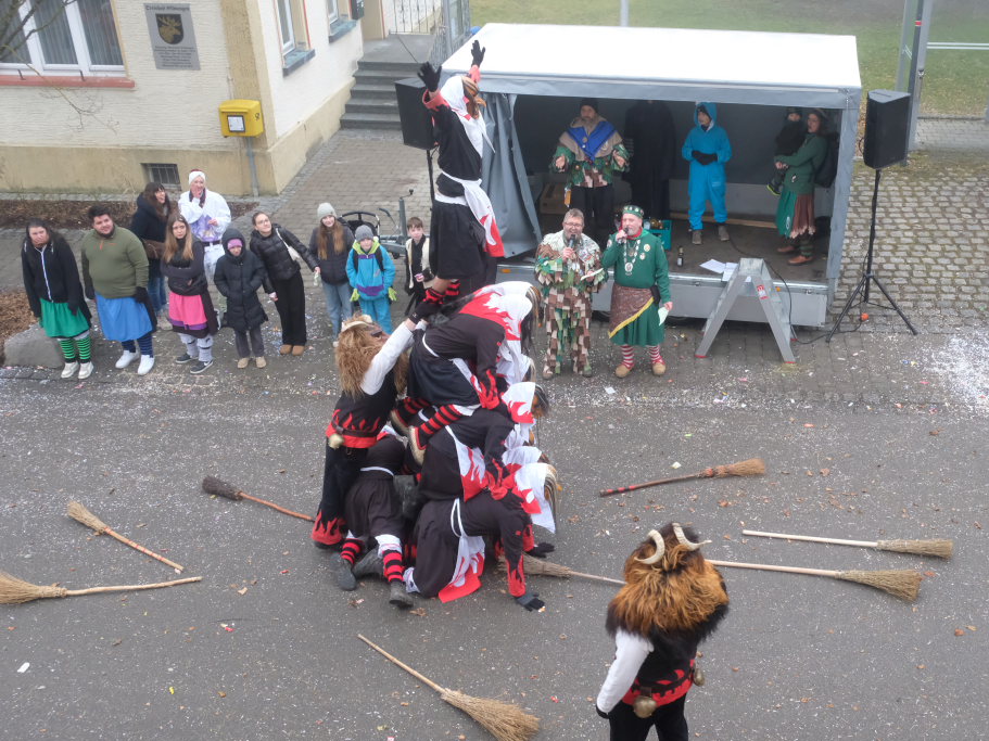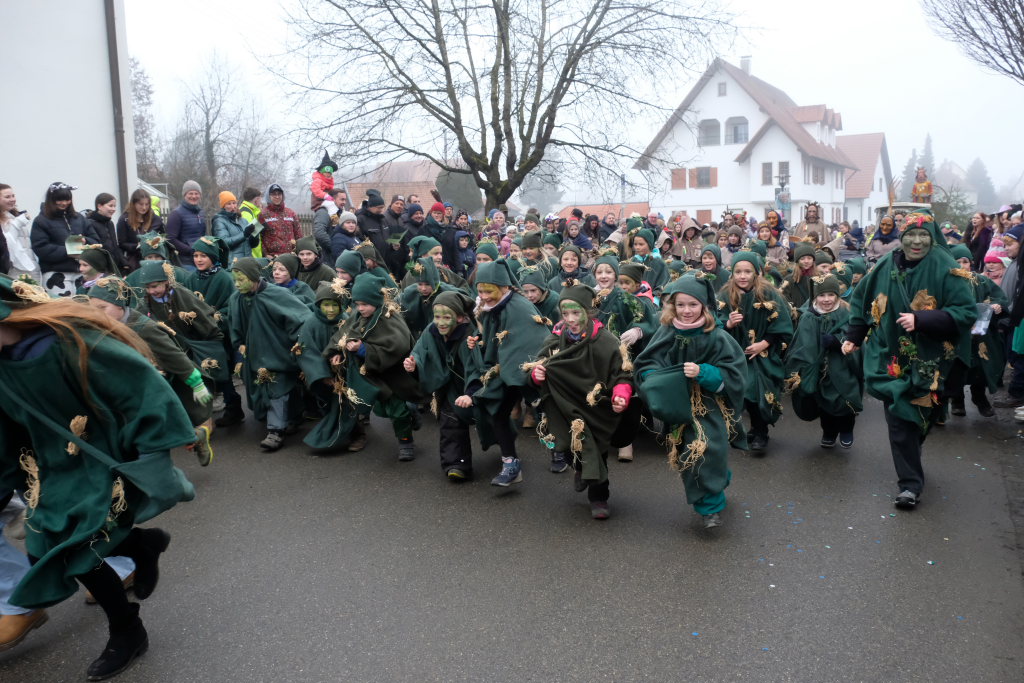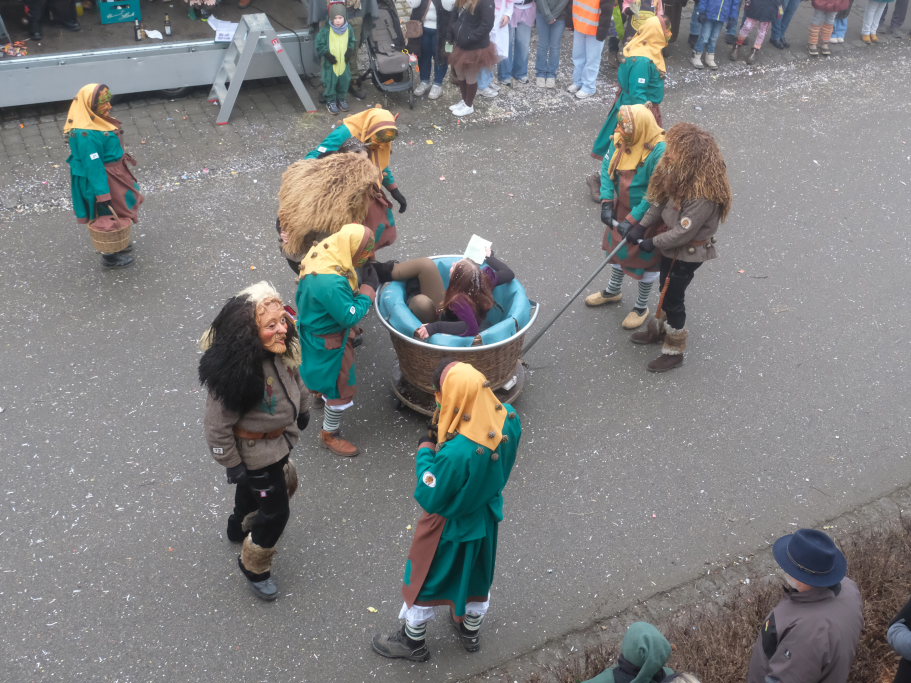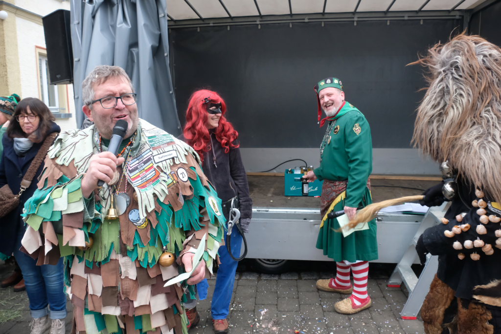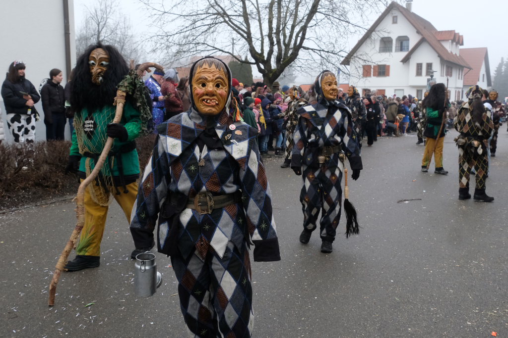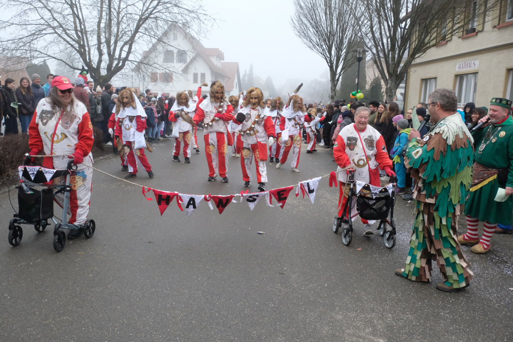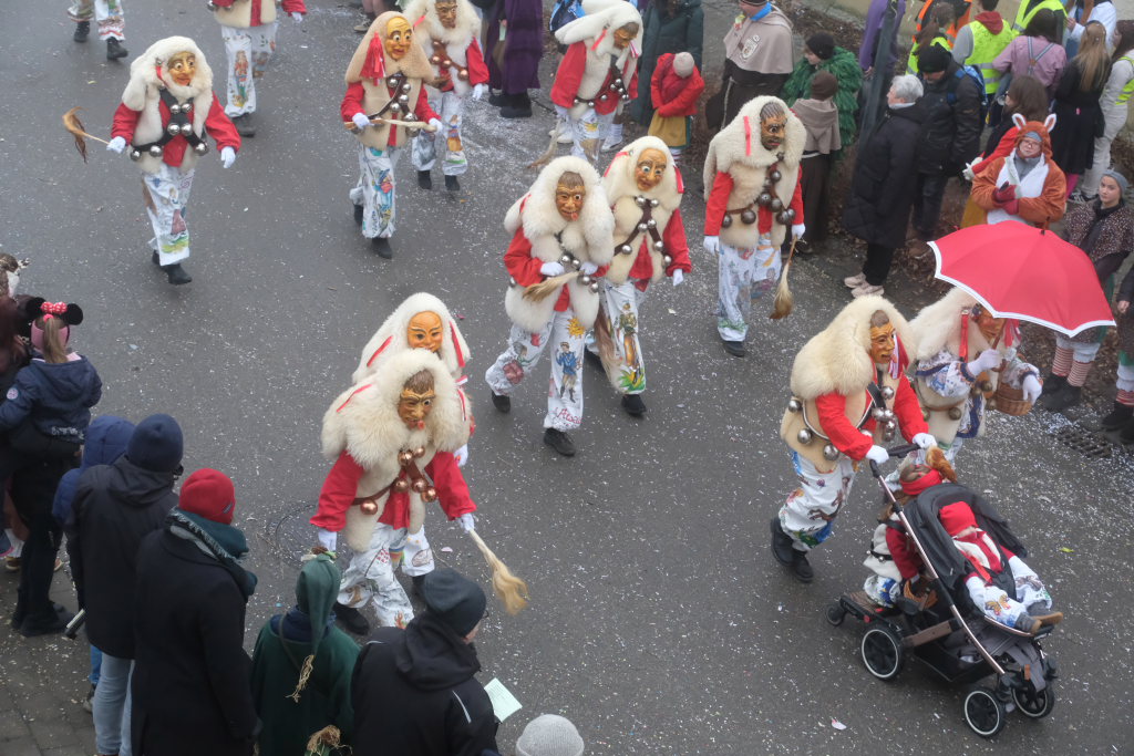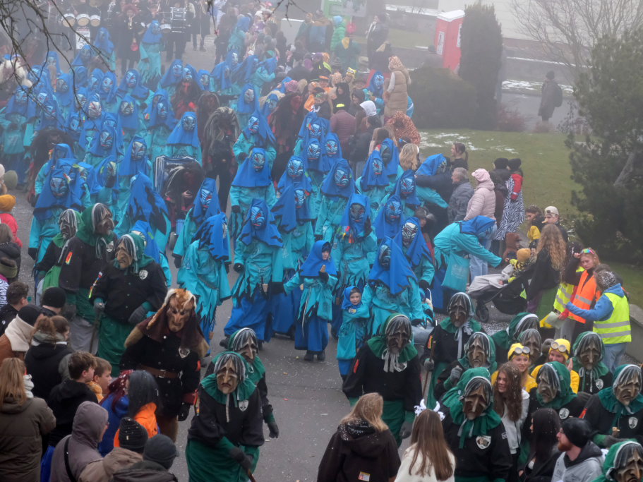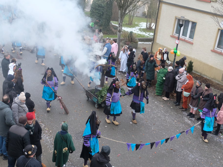 Mit den weitesten Weg auf sich genommen hatten die Lauinger Hexen, die Heimatzunft von Alex Wild sowie die beiden Ulmer Zünfte mit Gauga Ma und Hagelhex. Den Abschluss des Zuges bildete dann der „Mischwald“ bestehend aus einigen Bahwaldbohle und den Baindter Rasplern.