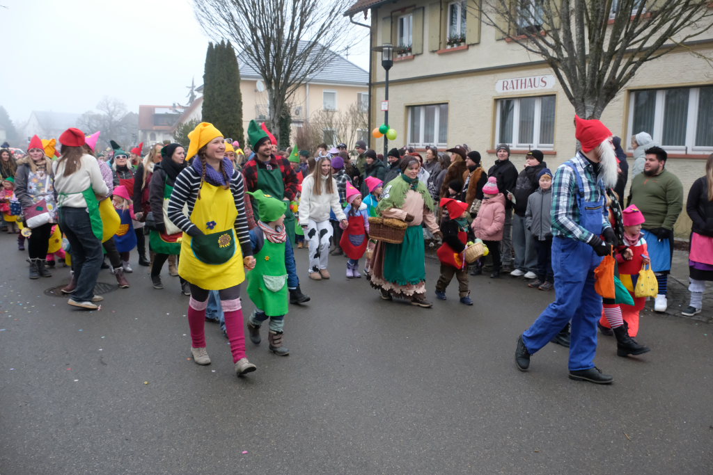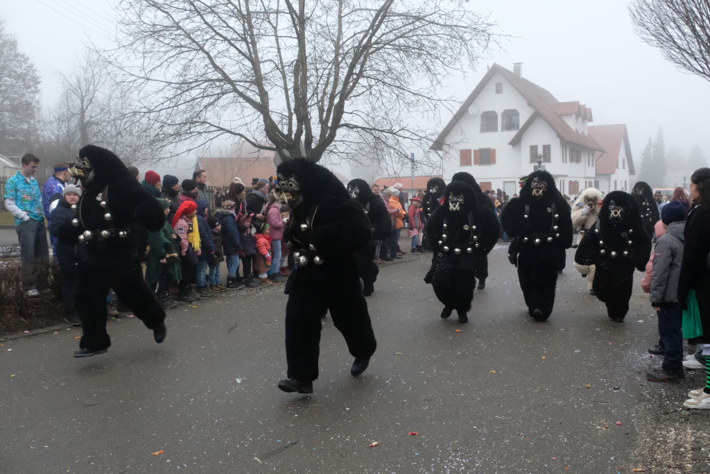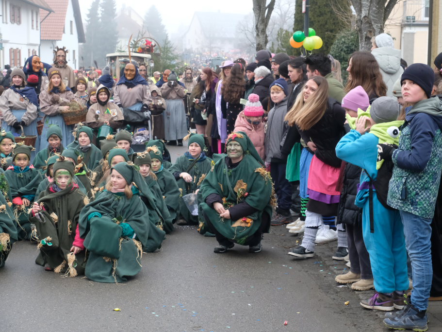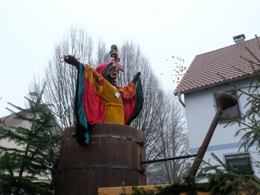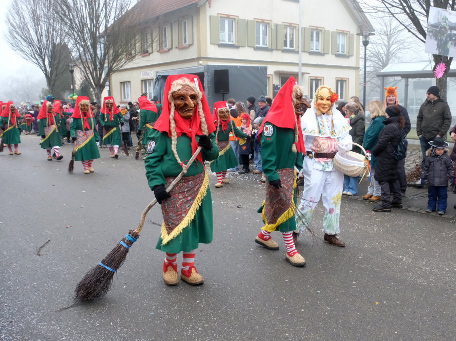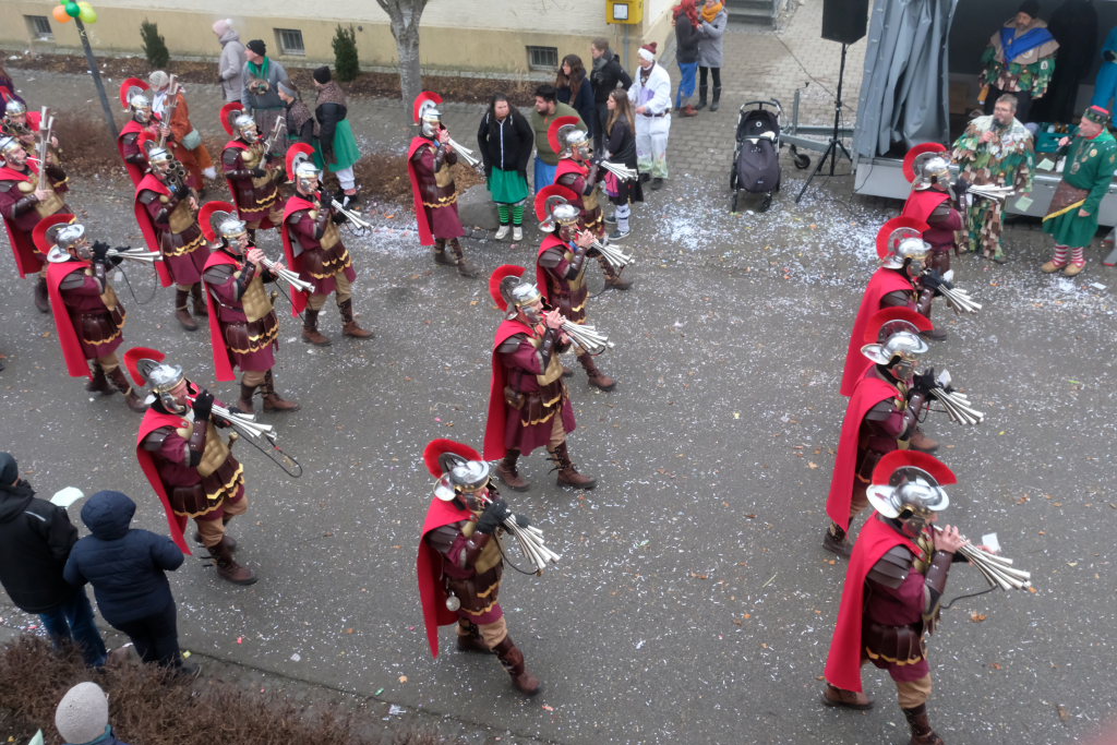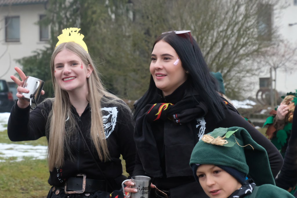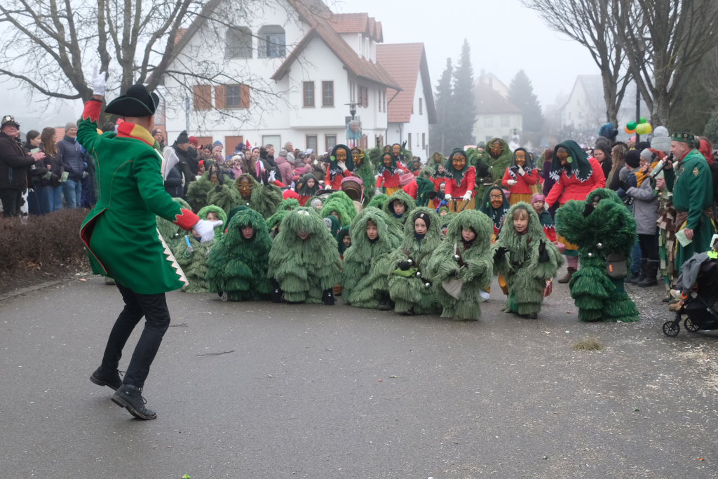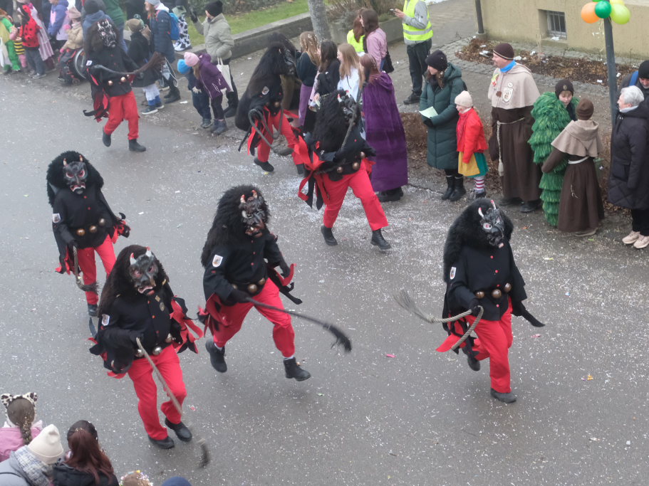 Mit den weitesten Weg auf sich genommen hatten die Lauinger Hexen, die Heimatzunft von Alex Wild sowie die beiden Ulmer Zünfte mit Gauga Ma und Hagelhex. Den Abschluss des Zuges bildete dann der „Mischwald“ bestehend aus einigen Bahwaldbohle und den Baindter Rasplern.