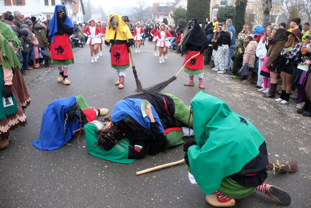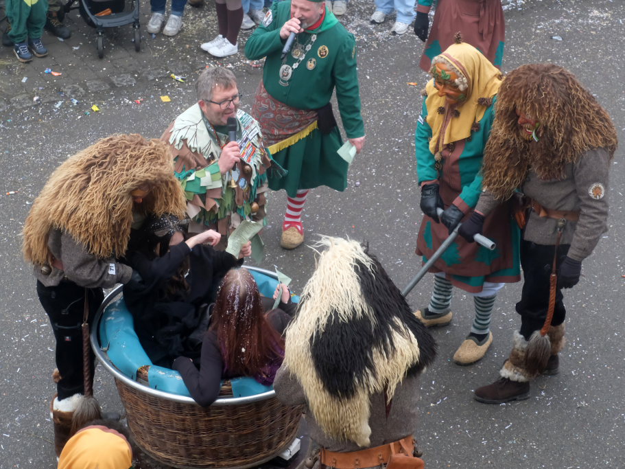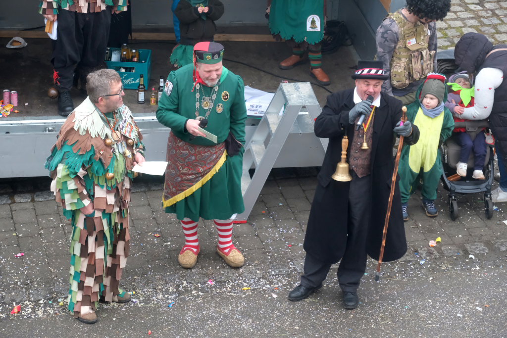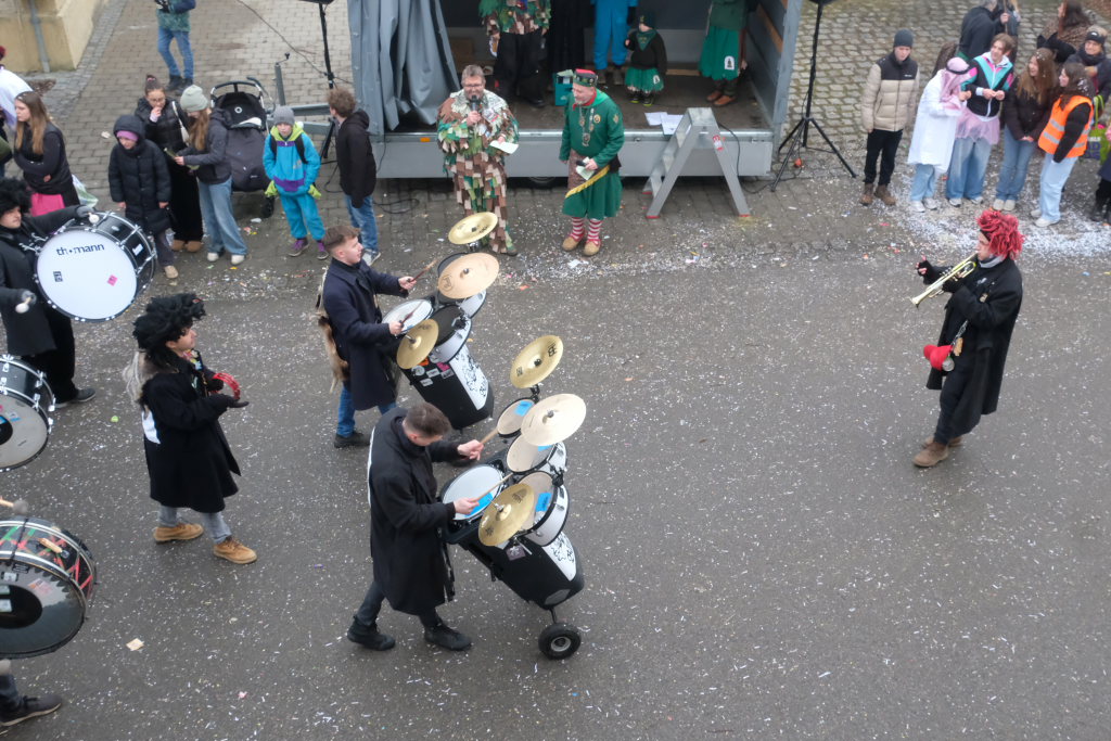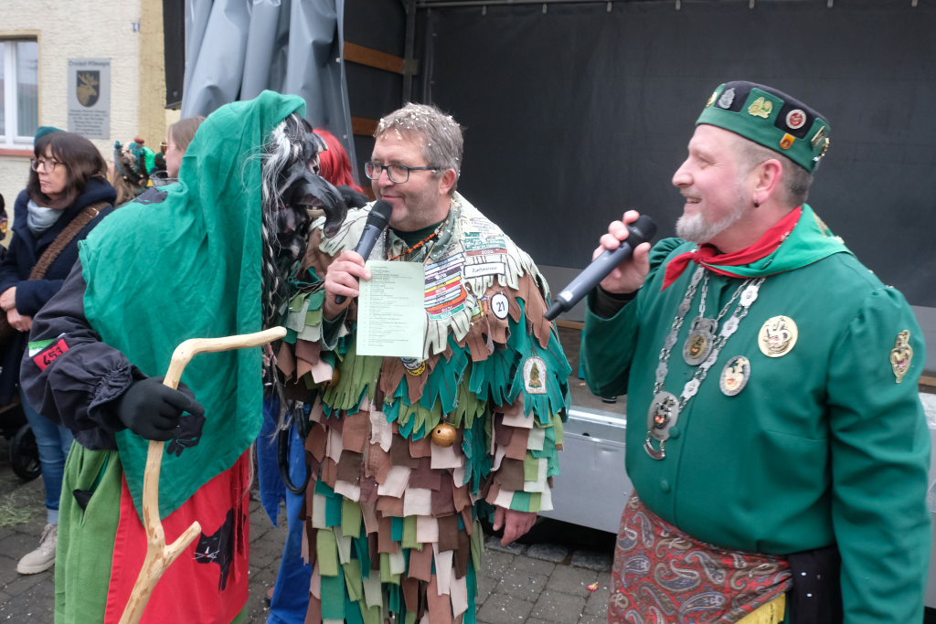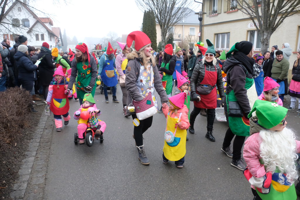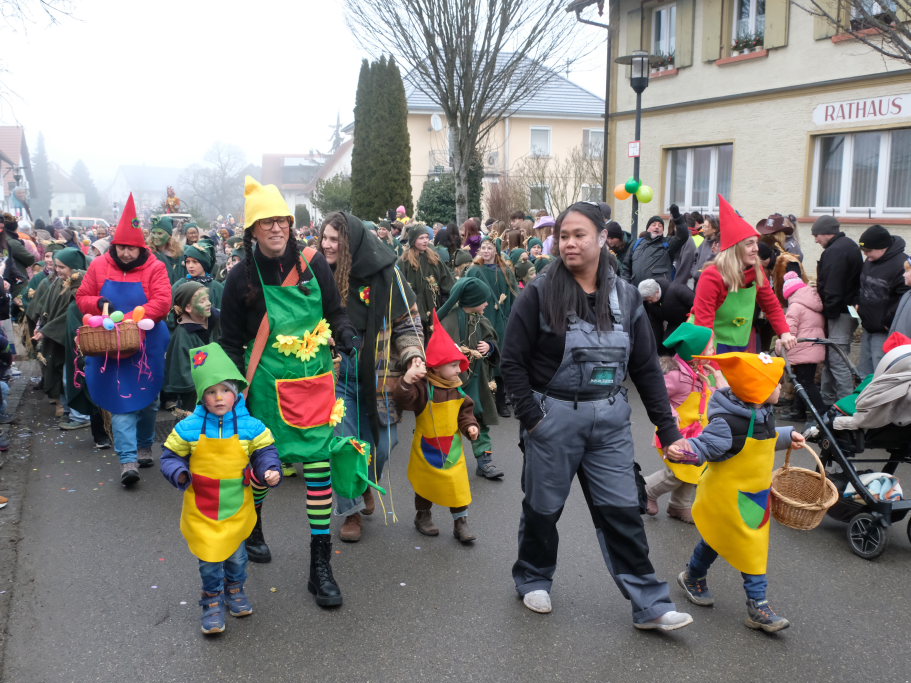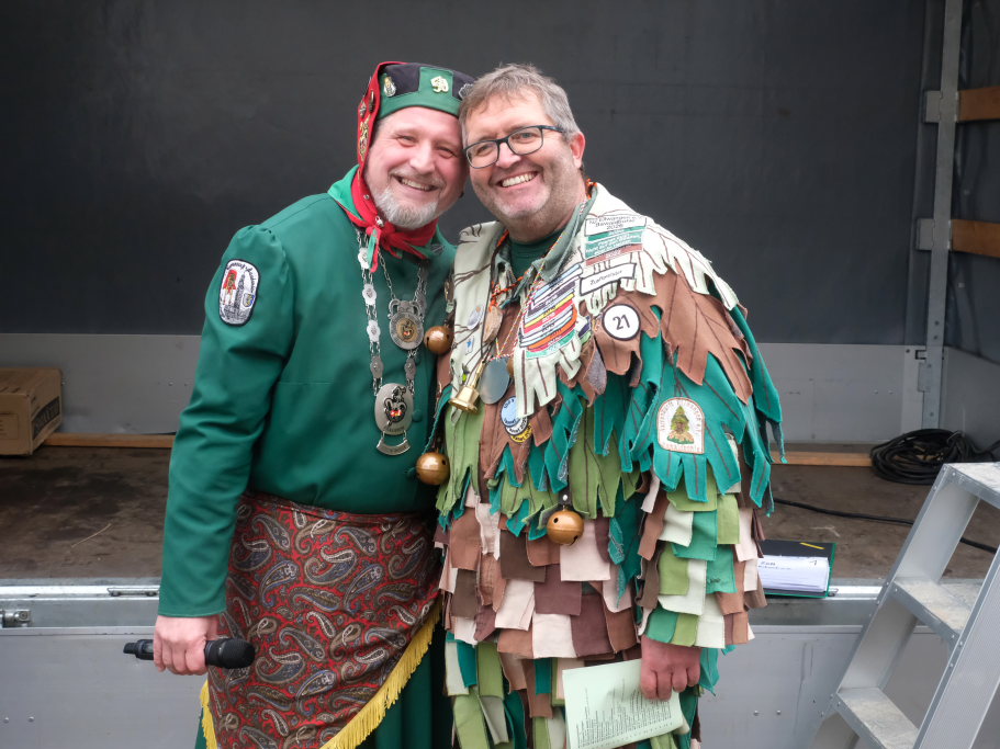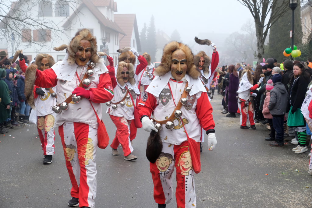 Mit den weitesten Weg auf sich genommen hatten die Lauinger Hexen, die Heimatzunft von Alex Wild sowie die beiden Ulmer Zünfte mit Gauga Ma und Hagelhex. Den Abschluss des Zuges bildete dann der „Mischwald“ bestehend aus einigen Bahwaldbohle und den Baindter Rasplern.