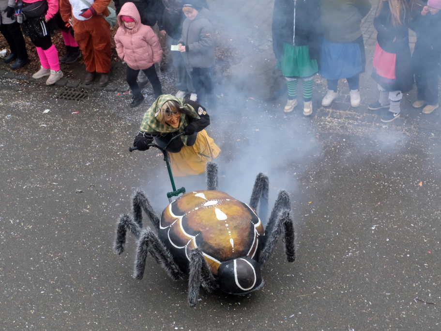 Nach dem Motto „Nach mir die Sintflut“ (bzw. der Waldbrand) ließen es die Waldhexen aus Osterhofen richtig qualmen. Ähnliches boten auch die Otterswanger Grottafanger mit ihrem qualmenden Spinnenmobil.