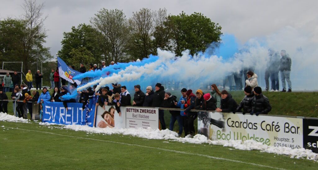 Mit voller Konzentration gingen die Gäste in das Bad Waldseer Stadtderby und hatten sich bei einem gemeinsamen Mittagessen im SVR-Sportheim auf das Kräftemessen mit dem Tabellennachbarn eingeschworen. Nachdem die Partie der Zweiten wegen schneebedecktem Rasen kurzfristig abgesagt worden war, gab es für die Begegnung der Ersten grünes Licht. Von Beginn an waren die sehr zahlreichen Reutener Anhänger lautstark am Start und verschafften mit Trommeln und Fahnen Heimspielatmosphäre für die Reutener Kicker.