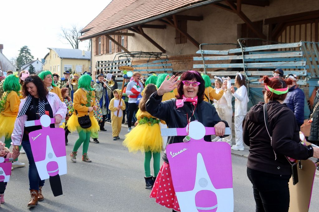 Angeführt wurde der närrische Umzug der „Achsteiner“ durch den Büttel Armin Sauter, gefolgt von den Steinacher Gardedamen. Die bunt gemischten Gruppen mit italienischem Outfit schwärmten aus und trieben ihren Schabernack mit den Zuschauern. Da waren Mafiosi dabei, genauso wie nett kostümierte mit Citrusfrüchten behängte Ausschenkerinnen von Aperol und Limoncello. Natürlich durften die Nationalfarben, wunderschön dargestellt in Grün-Weiß-Rot Trikolore-Kostümierungen nicht fehlen. Auch spezielle Vesperangebote mit italienischen Pizza-Nationalgerichten wie auch Parma-Schinken machten „Buon appetito“ zum Leitwort.