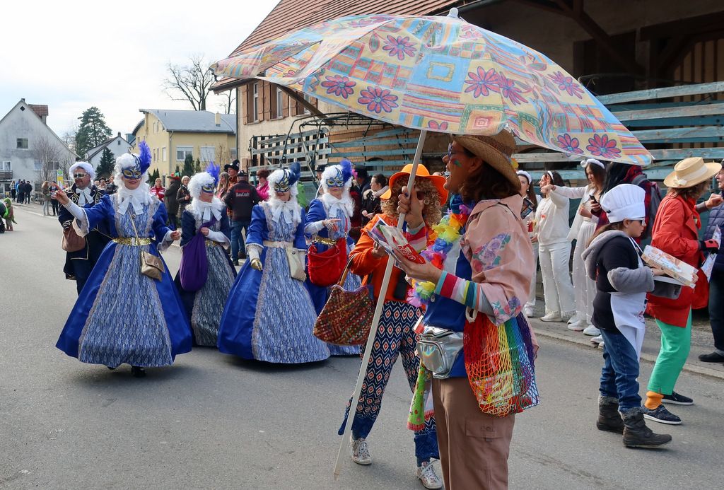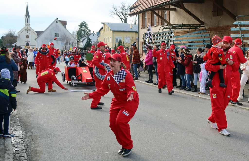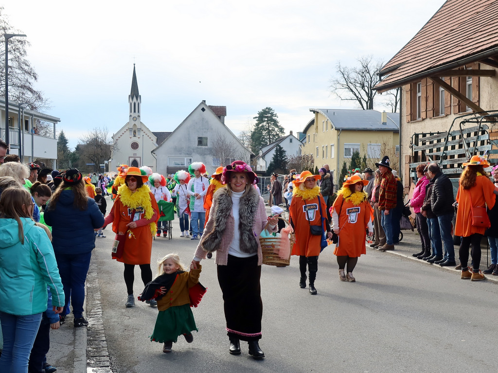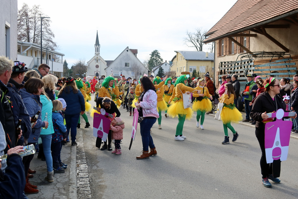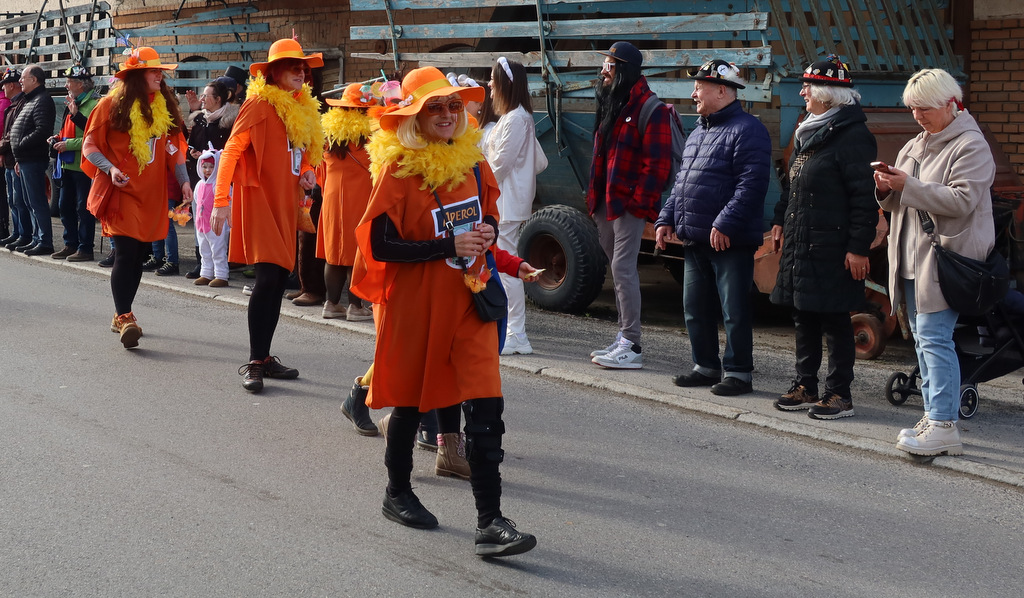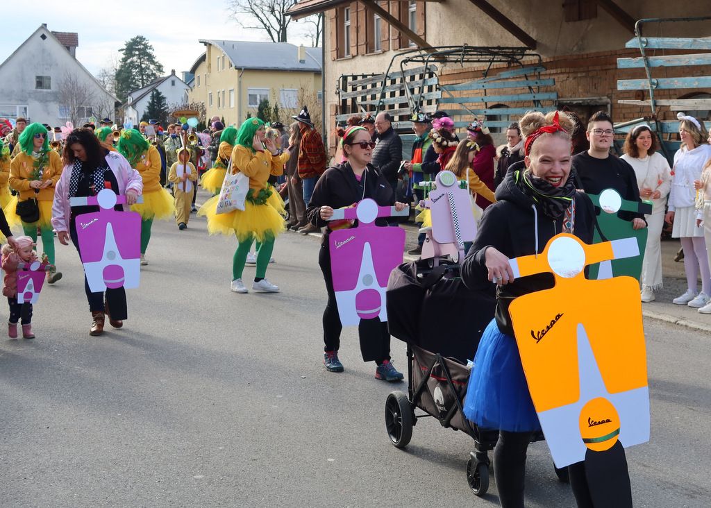 Angeführt wurde der närrische Umzug der „Achsteiner“ durch den Büttel Armin Sauter, gefolgt von den Steinacher Gardedamen. Die bunt gemischten Gruppen mit italienischem Outfit schwärmten aus und trieben ihren Schabernack mit den Zuschauern. Da waren Mafiosi dabei, genauso wie nett kostümierte mit Citrusfrüchten behängte Ausschenkerinnen von Aperol und Limoncello. Natürlich durften die Nationalfarben, wunderschön dargestellt in Grün-Weiß-Rot Trikolore-Kostümierungen nicht fehlen. Auch spezielle Vesperangebote mit italienischen Pizza-Nationalgerichten wie auch Parma-Schinken machten „Buon appetito“ zum Leitwort.