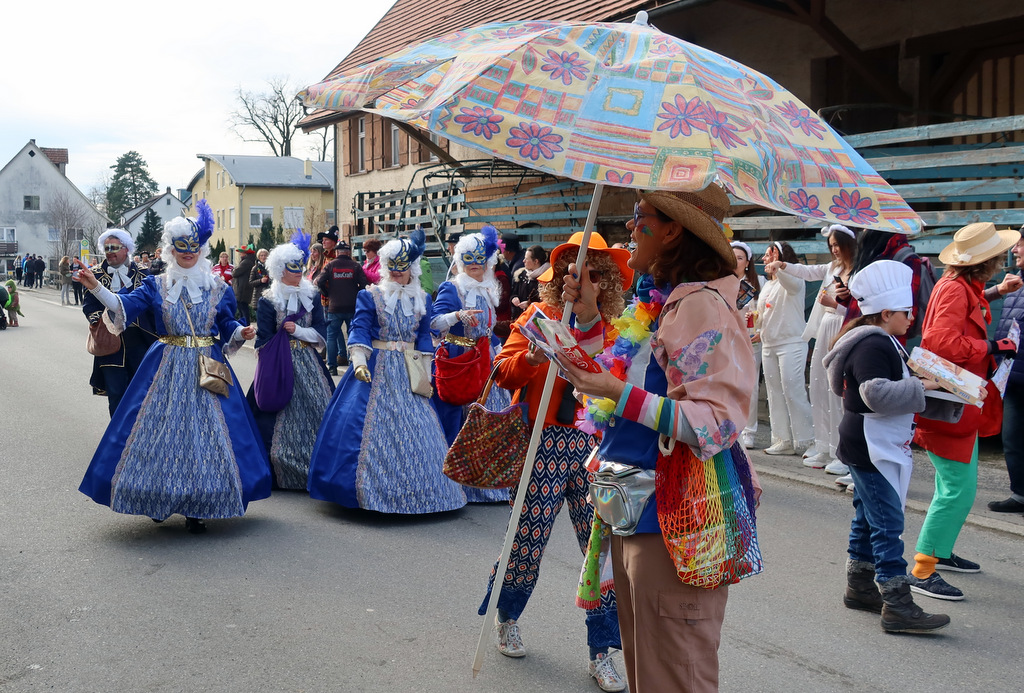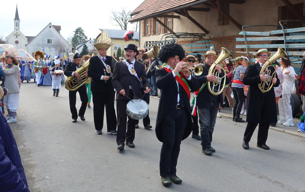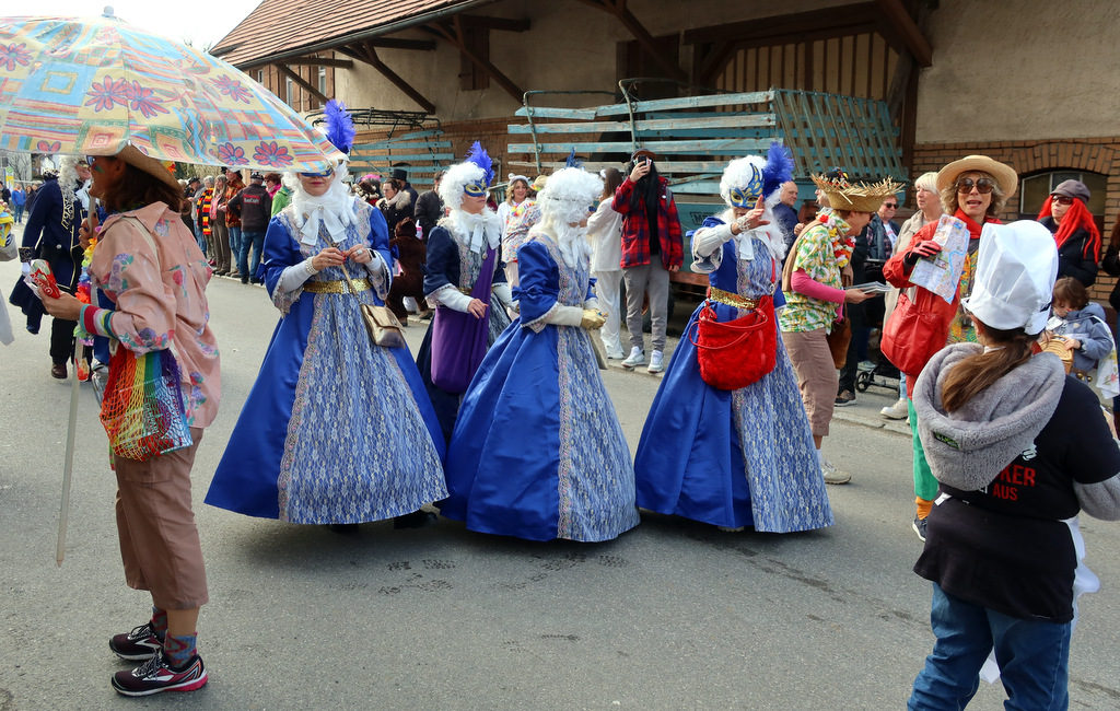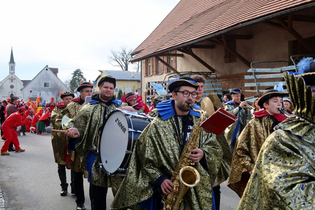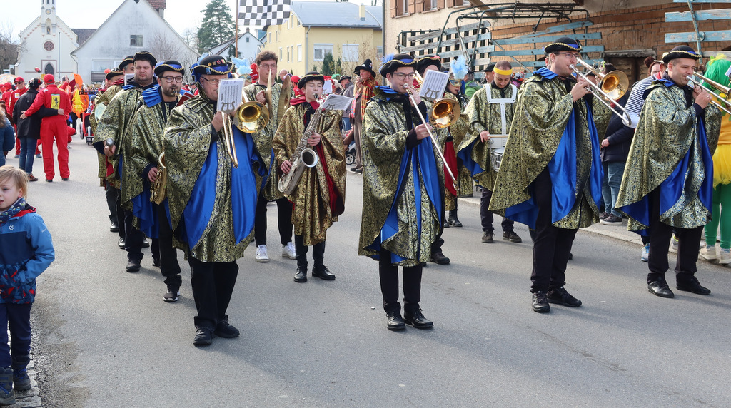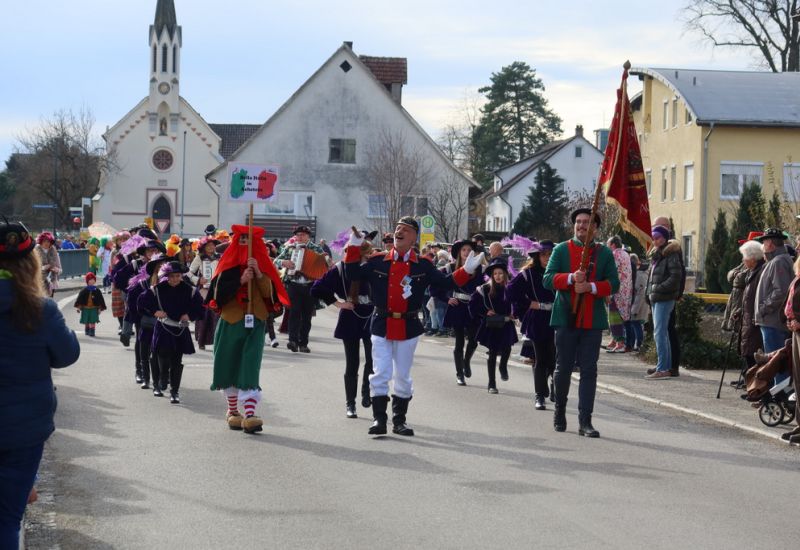 Den prachtvollen Abschluss bildete eine toll gekleidete venezianische Maskengruppe, die mit großem Beifall bedacht wurde, wie all die vielen befreundeten Musikgruppen und Musikkapellen, die mit schmissigen, närrischen Klängen das Umzugsgeschehen bereicherten.