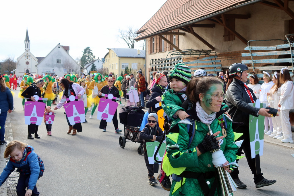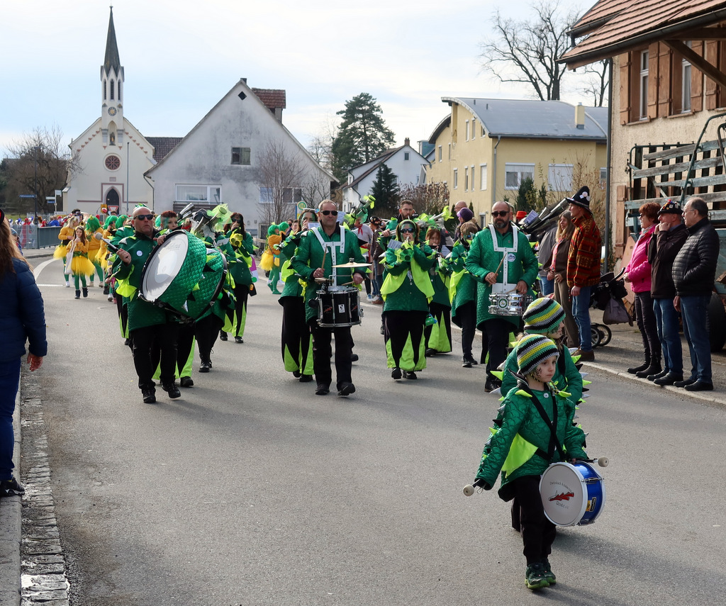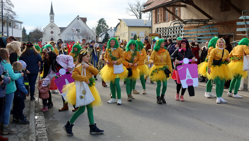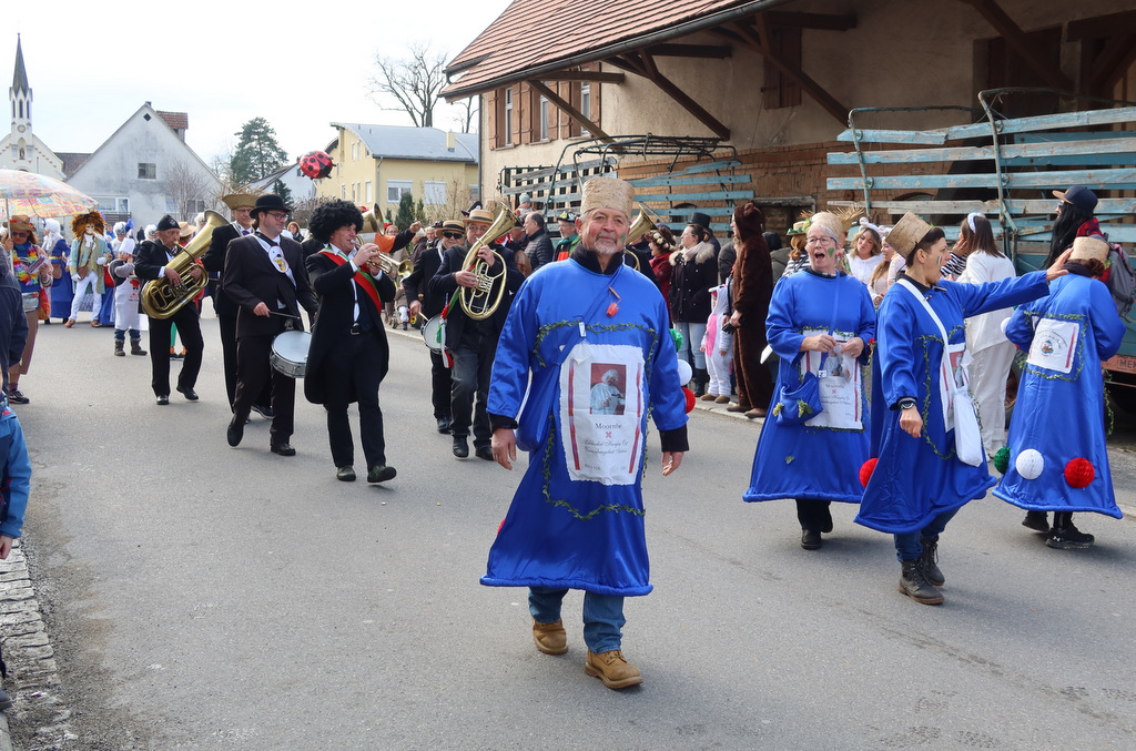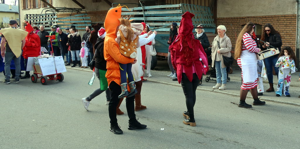 Den prachtvollen Abschluss bildete eine toll gekleidete venezianische Maskengruppe, die mit großem Beifall bedacht wurde, wie all die vielen befreundeten Musikgruppen und Musikkapellen, die mit schmissigen, närrischen Klängen das Umzugsgeschehen bereicherten.