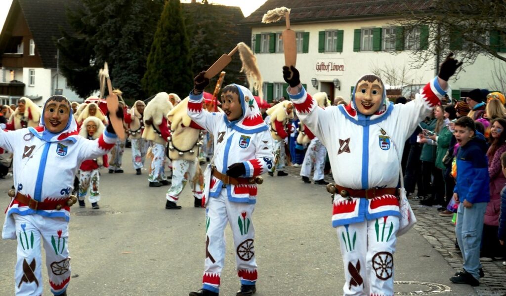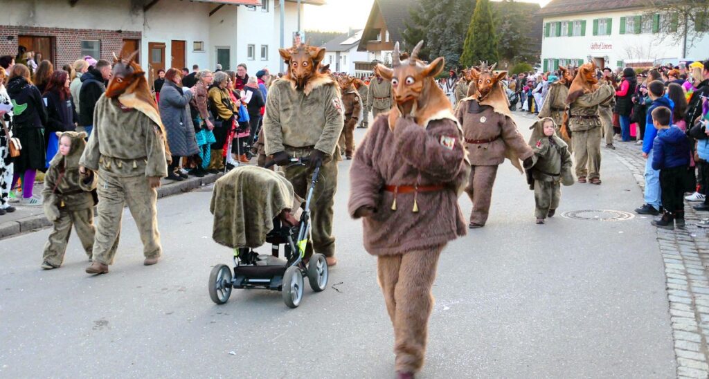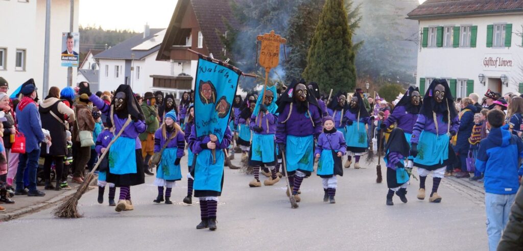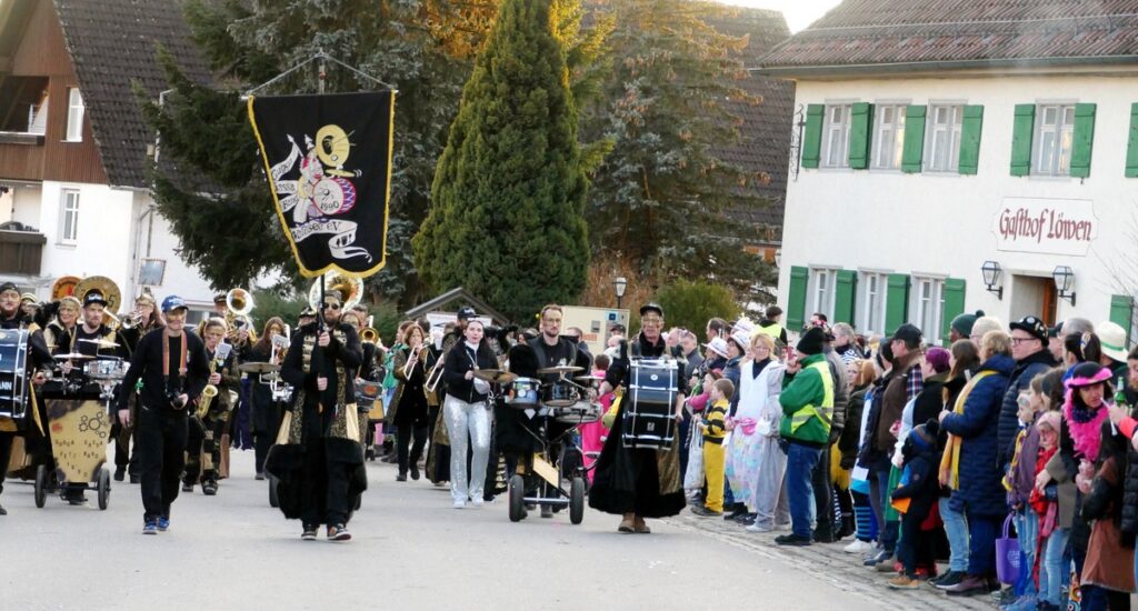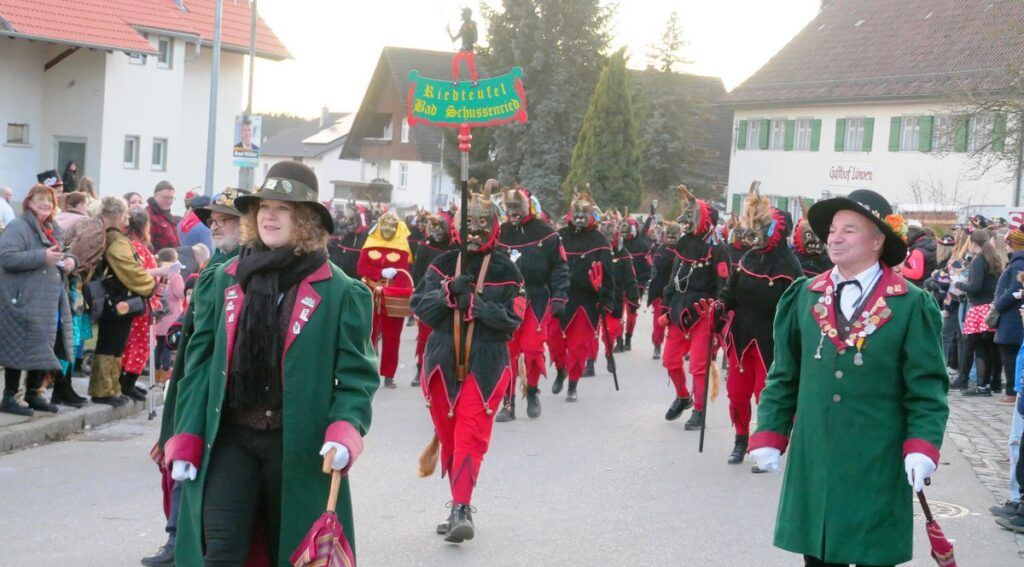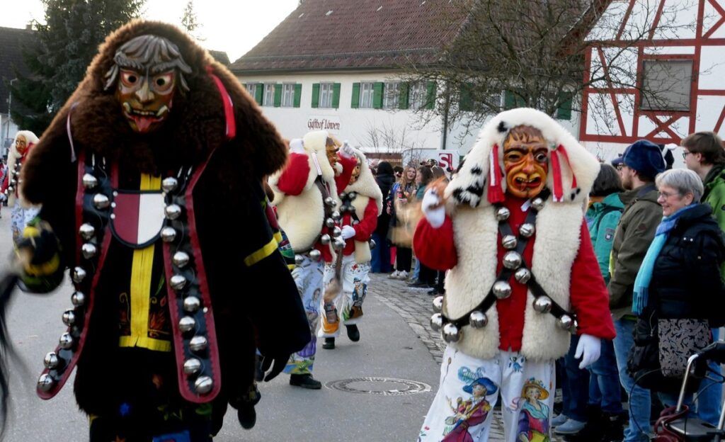 Michelwinnaden – Michelwinnaden verwandelte sich am Samstag (25. Januar) erneut in eine gefeierte Narrenhochburg der Region. Im Rahmen des 35-jährigen Bestehens der Narrenzunft Michelwinnaden „Bulla-Rätze wurde der alle fünf Jahre stattfindende große Narrensprung „Vom Tag in die Nacht“ im kleinsten Stadtteil von Bad Waldsee hervorragend organisiert und super bewältigt. Allein die Zahlen und Daten sprechen Bände: Michelwinnaden hat etwa 650 Einwohner und die Narrenzunft hat um die 300 Mitglieder. Der Wettergott hatte es besonders gut gemeint, denn bei Plusgraden im zweistelligen Bereich und Sonnenschein waren auch die Wetterbedingungen ein Lockangebot für die viele Narren und Besucher, sich zum närrischen Geschehen nach Michelwinnaden aufzumachen.
