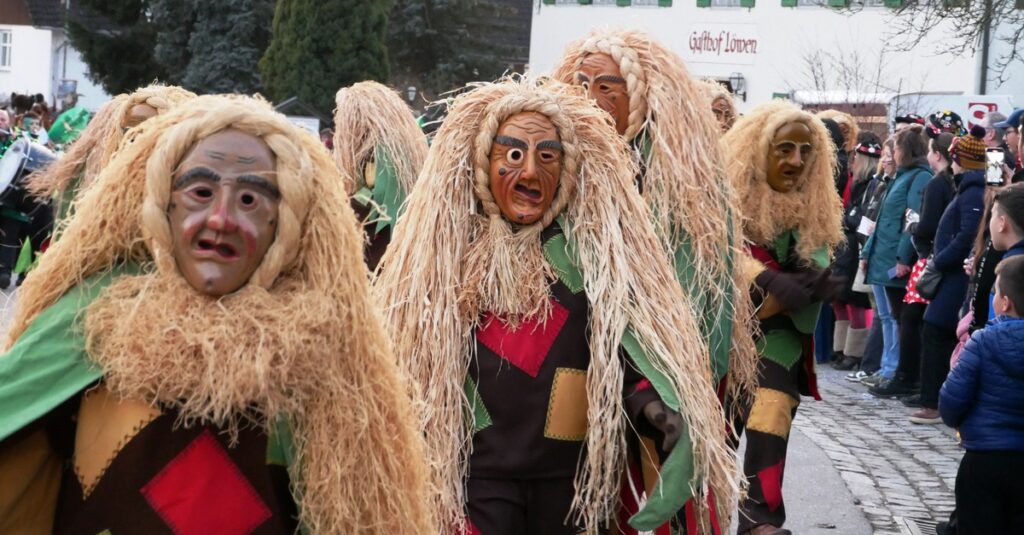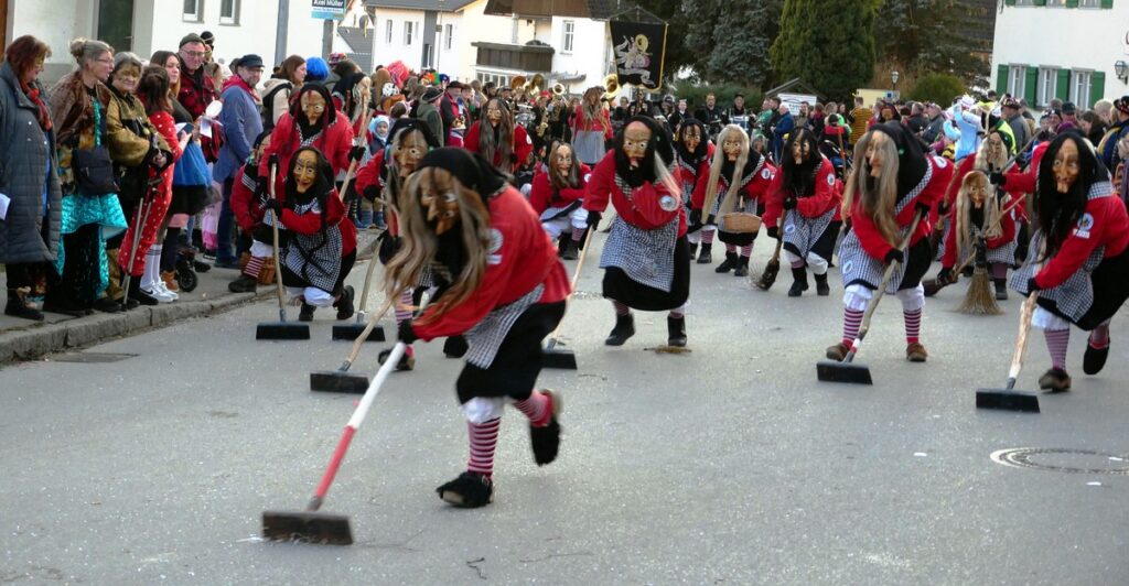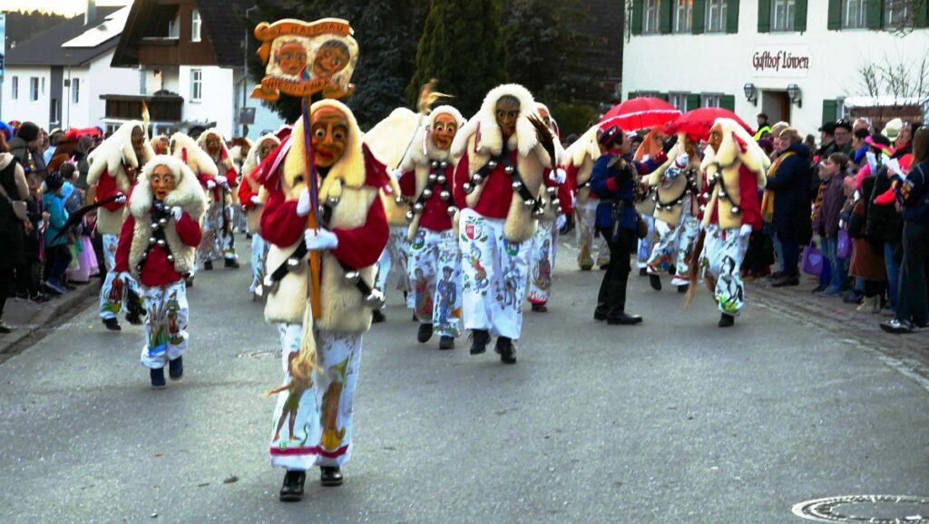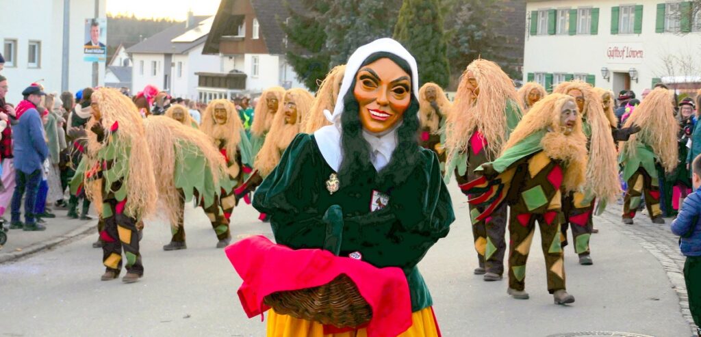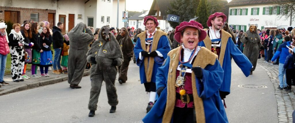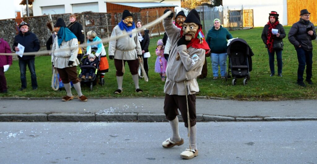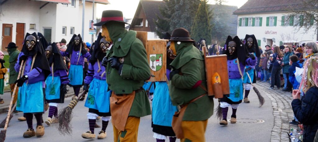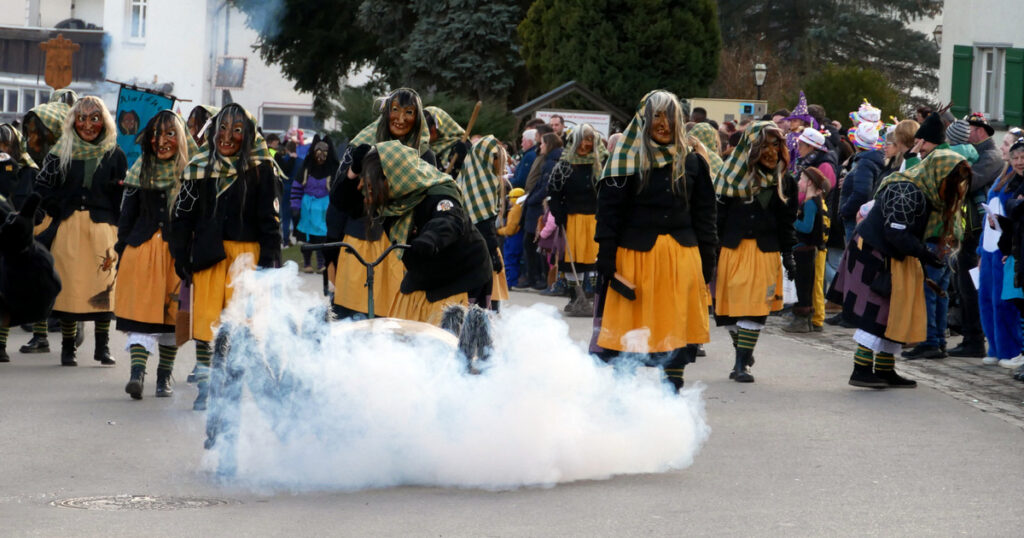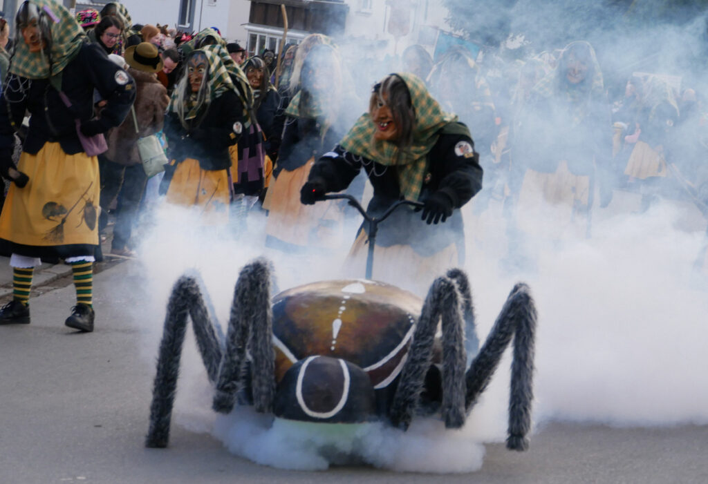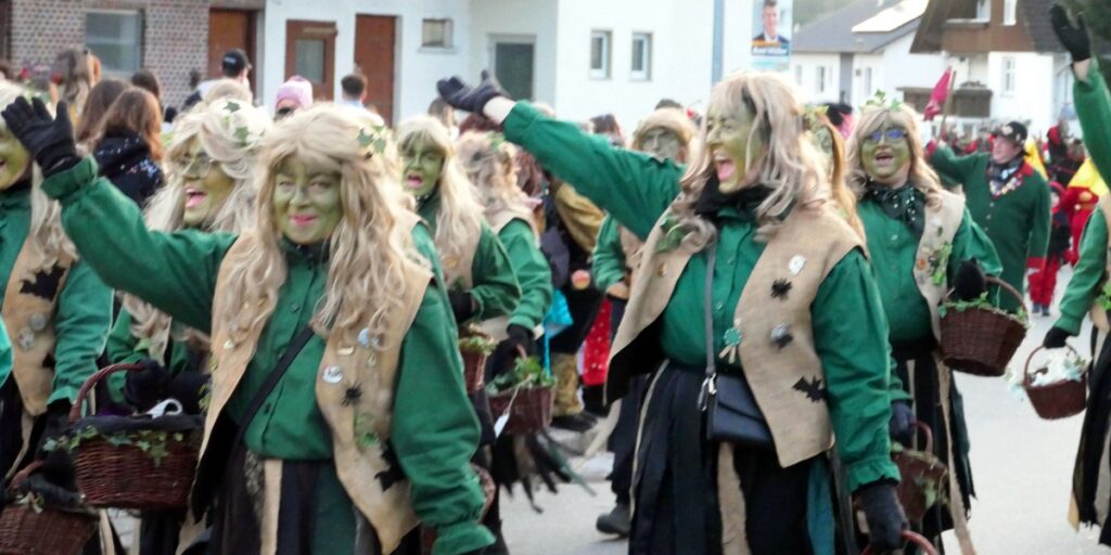 Immer wieder brandete Sonderbeifall auf, wenn sich Narrengruppen sportlich akrobatisch zeigten und ihre Künste beim Pyramidenaufbau zeigten. Besonders kräftig war der Applaus für den närrischen Nachwuchs. Am Ende des Umzugs mit insgesamt 28 teilnehmenden Gruppen hatten sich etliche Maskenträger der einheimischen Narrenzunft eingereiht und präsentierten ihre Masken „Bulla-Rätze“ und „Brunnenhölzler, denn die große Schar der Michelwinnader Maskenträger war als Helferinnen und Helfer im Einsatz.