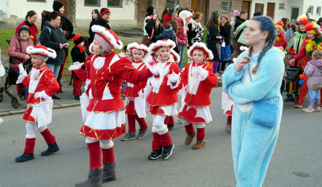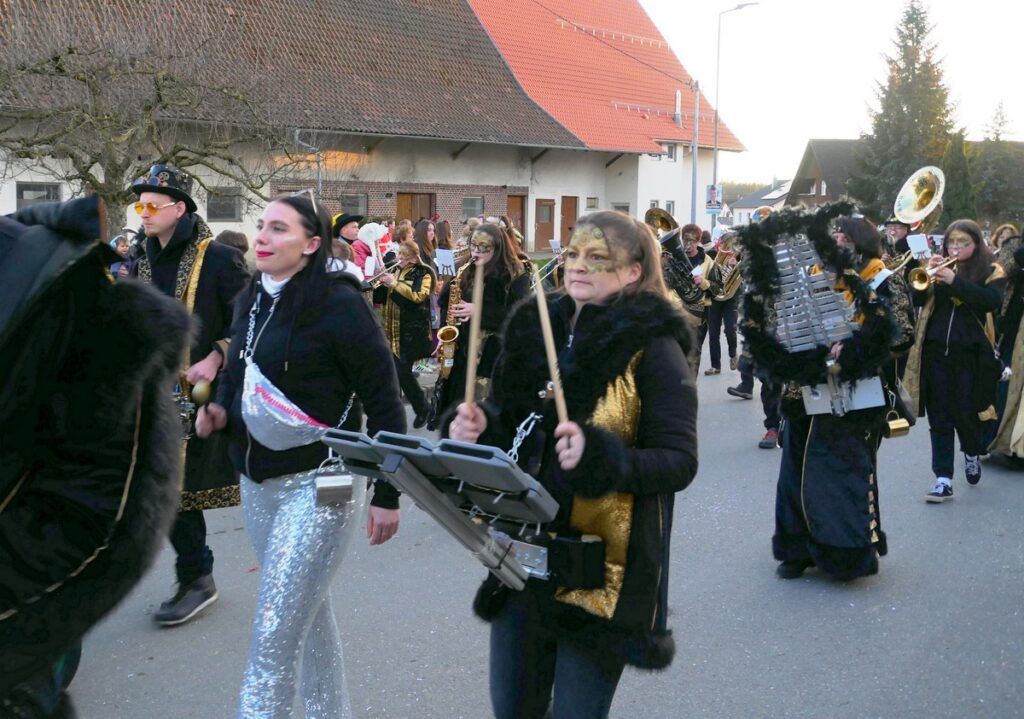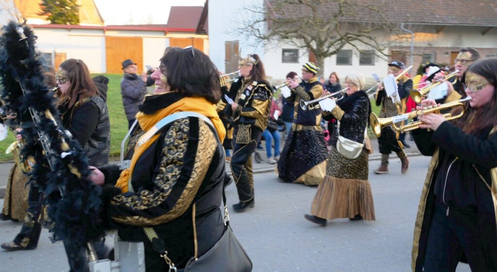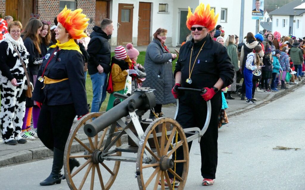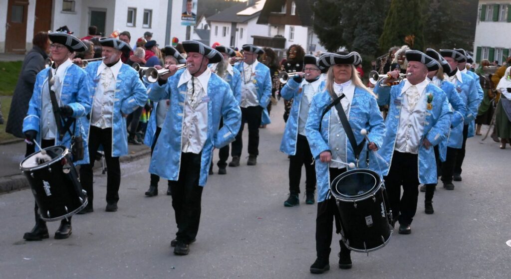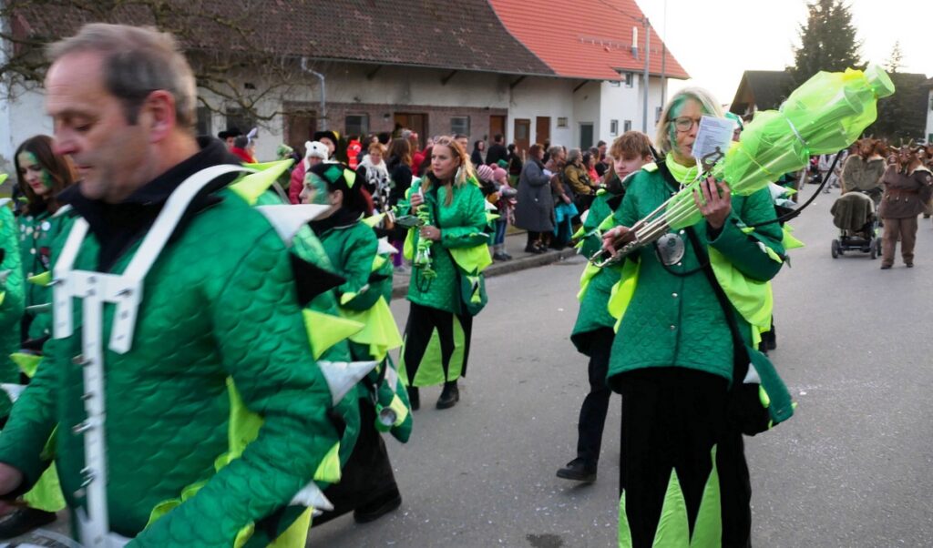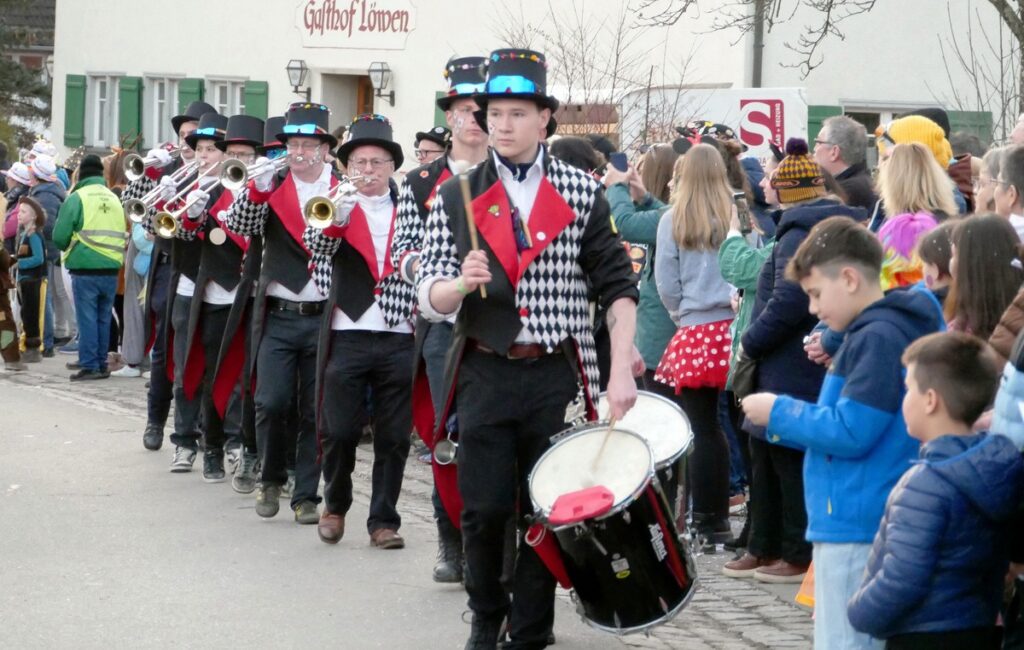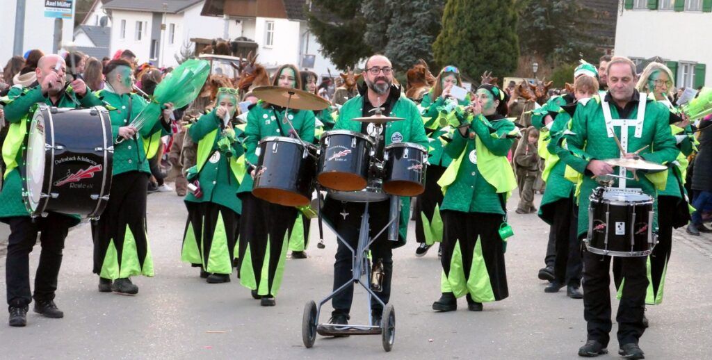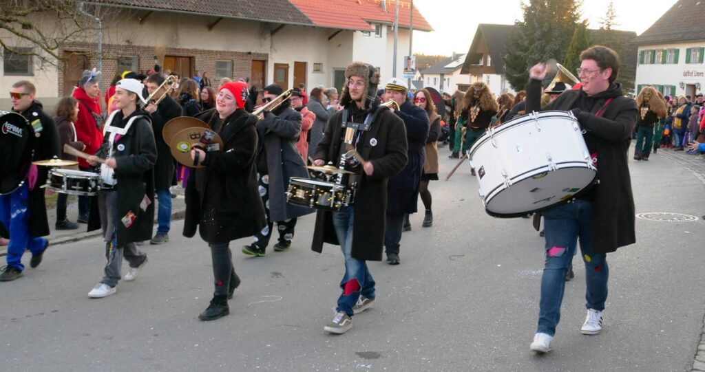 Allein neun musizierende Gruppen, davon Bands, Fanfarenzüge, Lumpenkapellen, Musikvereine, Schalmeiengruppen, sorgten für schmissige Unterhaltung und für viel Bewegung und heizten den Zuschauern am Straßenrand gewaltig ein.