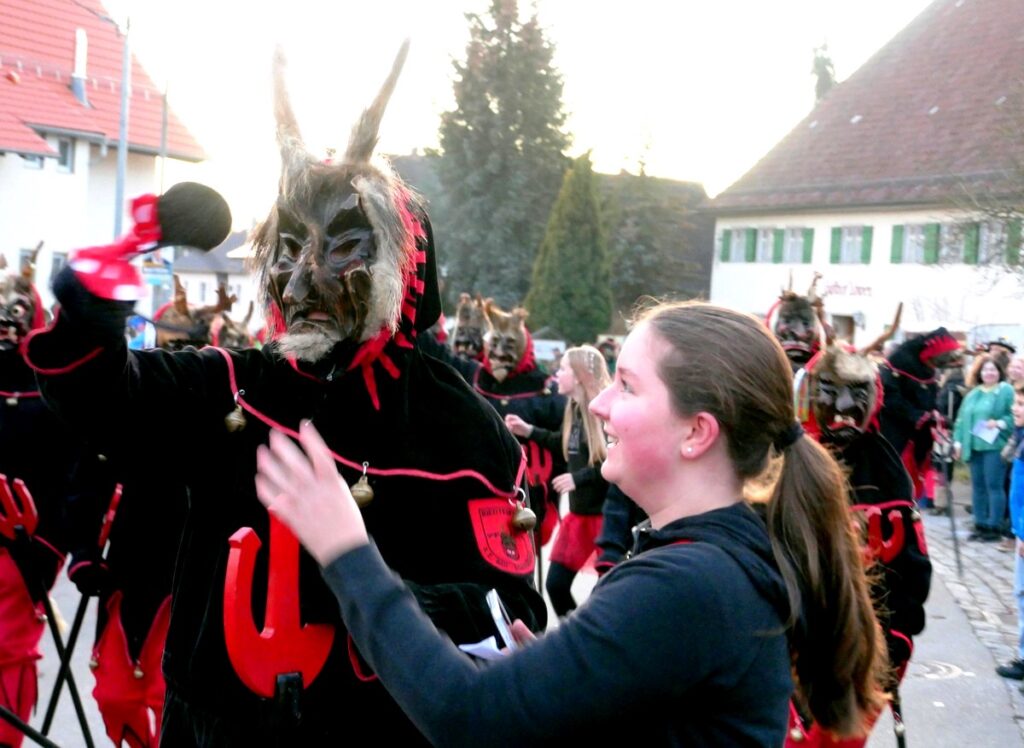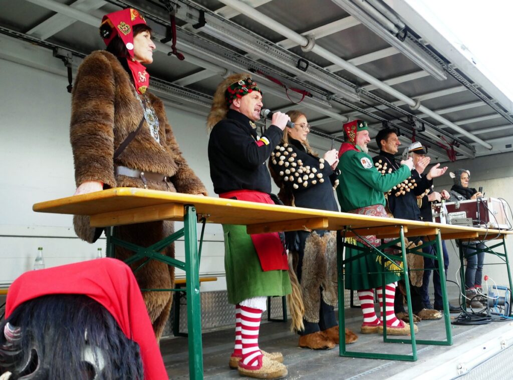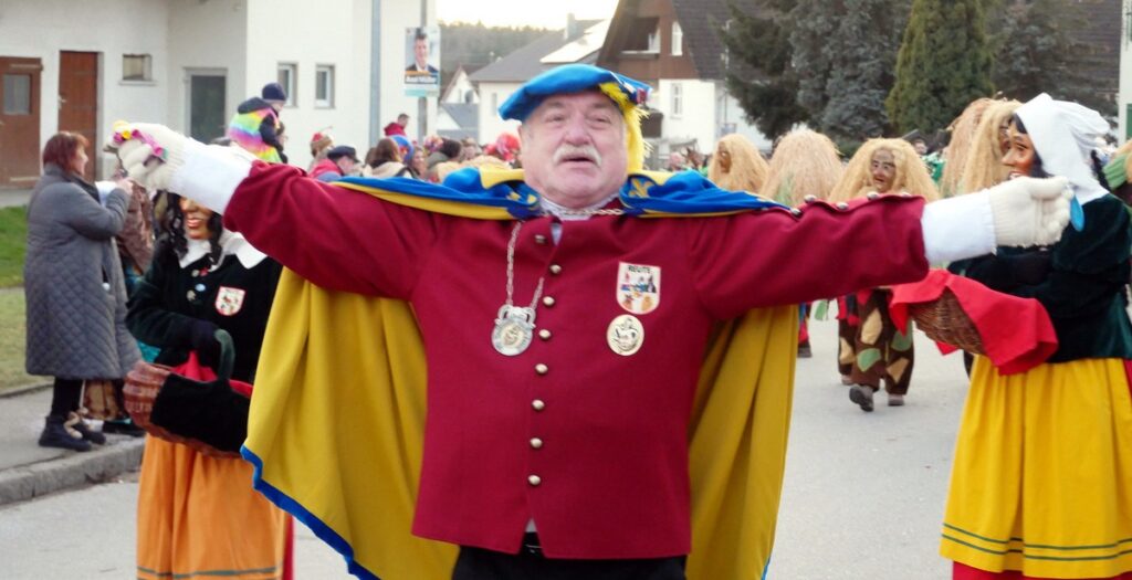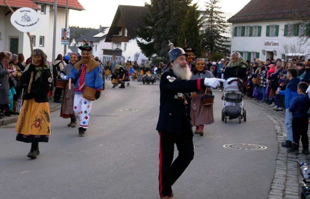 Zunftmeisterin Anika Schmid der NZ „Bulla-Rätze“, die zusammen mit VAN-Oberen, Ortsvorsteher Frieder Skowronski mit Gattin und etlichen Funktionären befreundeter Zünfte den Narrensprung von der Ehrentribüne aus verfolgte, durfte viele Komplimente entgegennehmen. „ Das ist schon bewundernswert, was Ihr in dem kleinen Dorf mit so vielen Helferinnen und Helfern und mit der Hilfe befreundeter Zünfte geschaffen habt“, so die Kernaussage. Auch Oberbürgermeister Matthias Henne verfolgte das närrische Großereignis vor Ort.