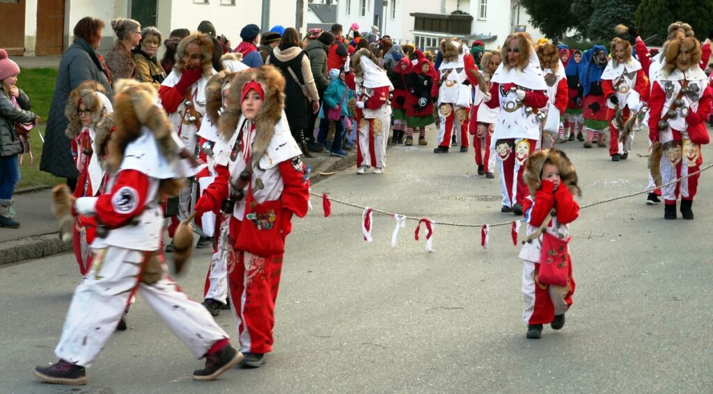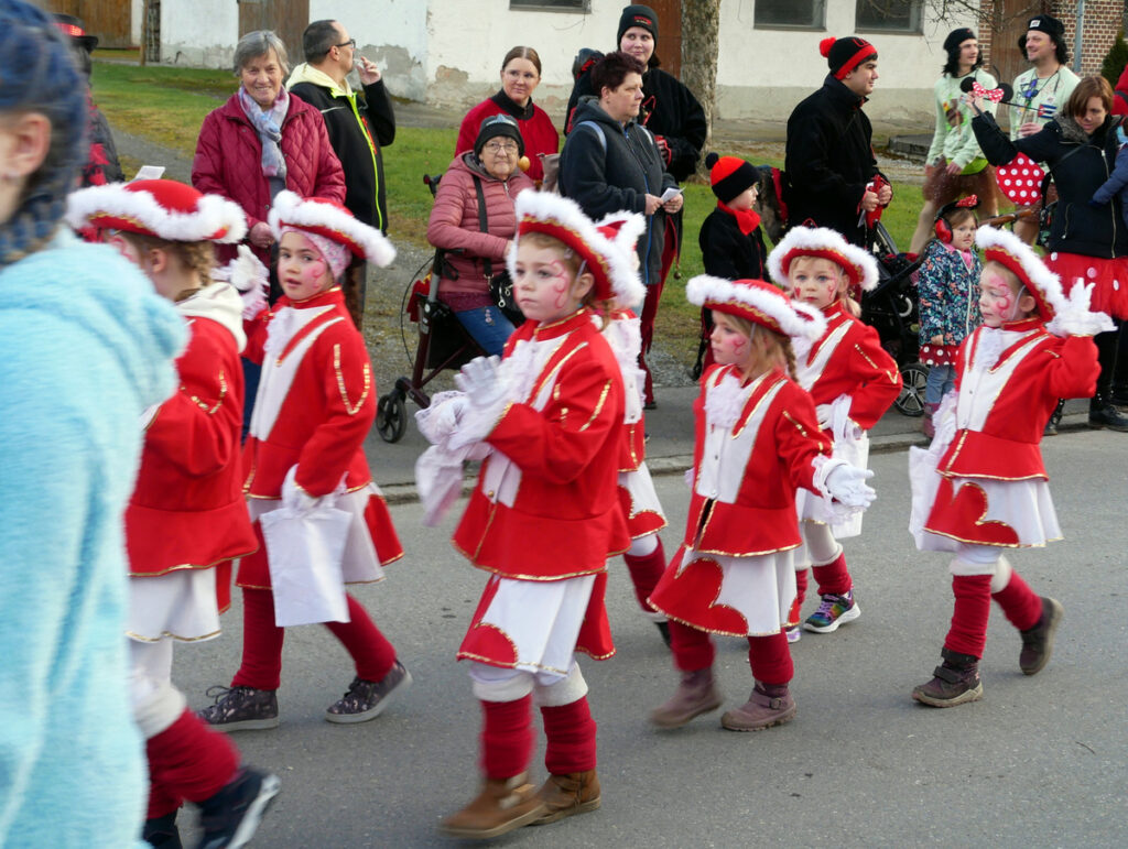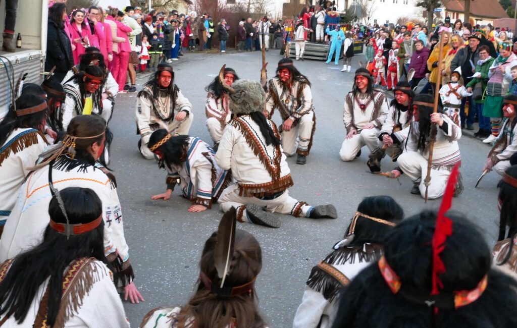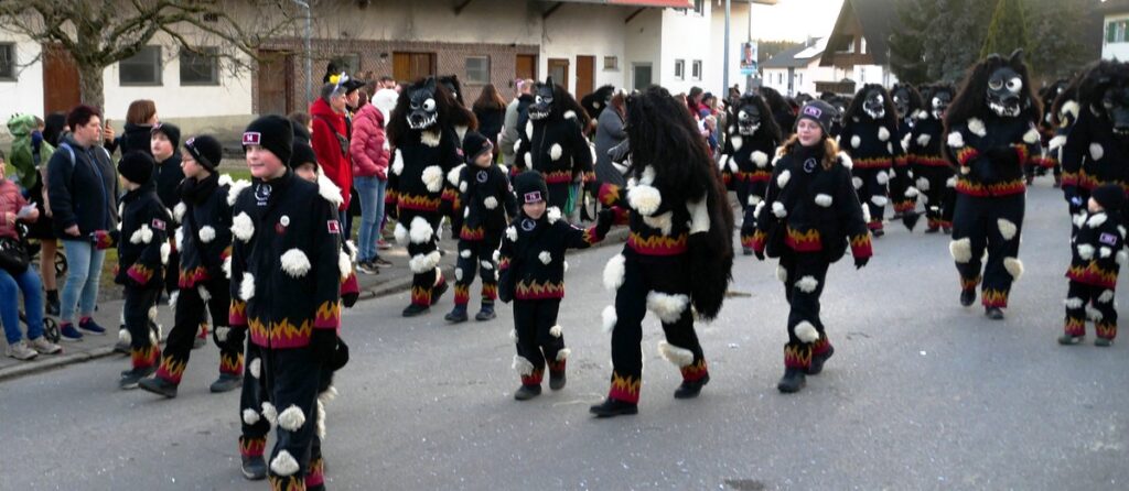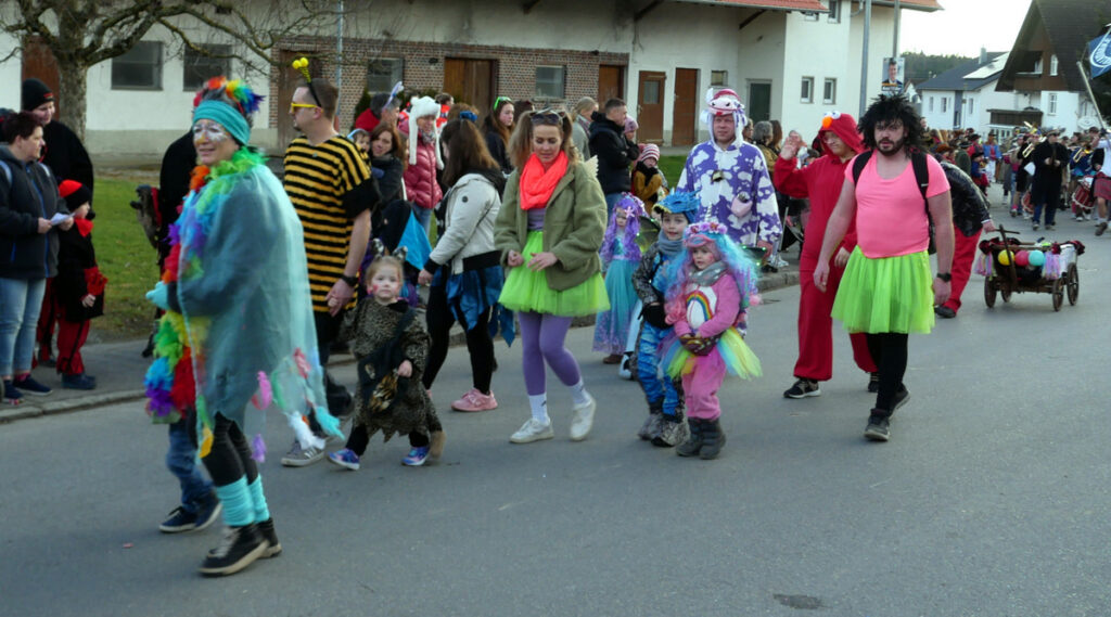 Den Narrensprung mit passendem Motto „Z`Nacht in Winiga“ erlebten unzählige Besucher, die im Zentrum in dichten Reihen das närrische Treiben bei bester Stimmung verfolgten. Als sich der Lindwurm um 16.16 Uhr vom Sportplatz aus in Bewegung setzte, angeführt vom Musikverein Concordia Michelwinnaden, der Kindergarde Michelwinnaden und den Kindern und Eltern des Kindergartens St. Maria, strahlte die Sonne noch vom Firmament.