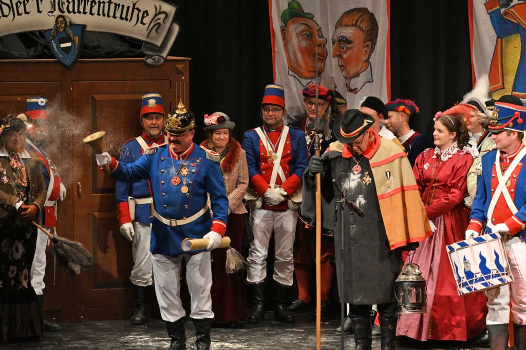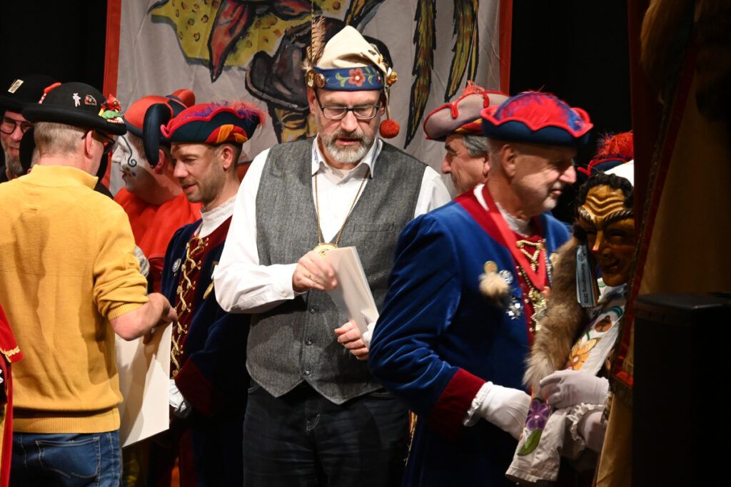 Nach ein paar Schunklern kommt der große Augenblick für Elmar Kibler, den Ordenskanzler. Er macht seine Sache gut und bringt mit seiner witzigen Moderation die Orden an Mann und Frau. So kurzweilig wie in diesem Jahr war die Ehrung selten. Nur das Sammlervölkle musste etwas darben. Denn laut Regieanweisung müssen die Sammlerinnen und Sammler als bunte Staffage völlig trocken rechts vor der Bühne stehen.