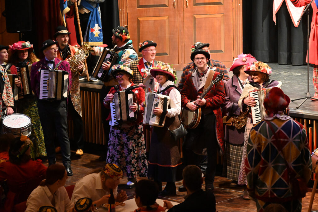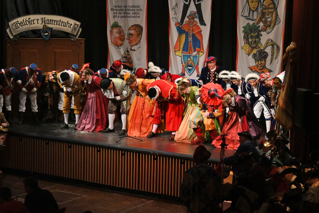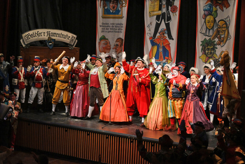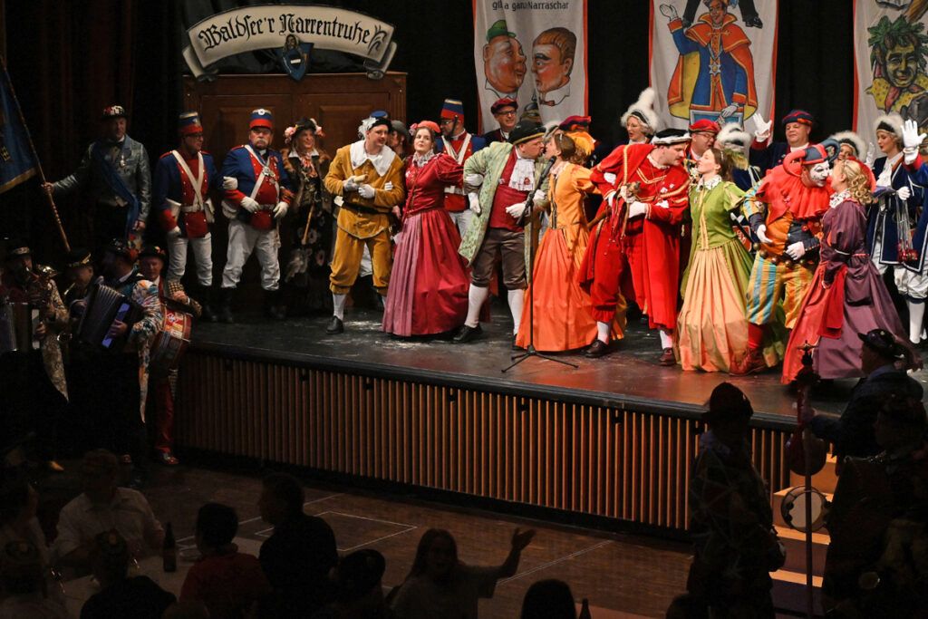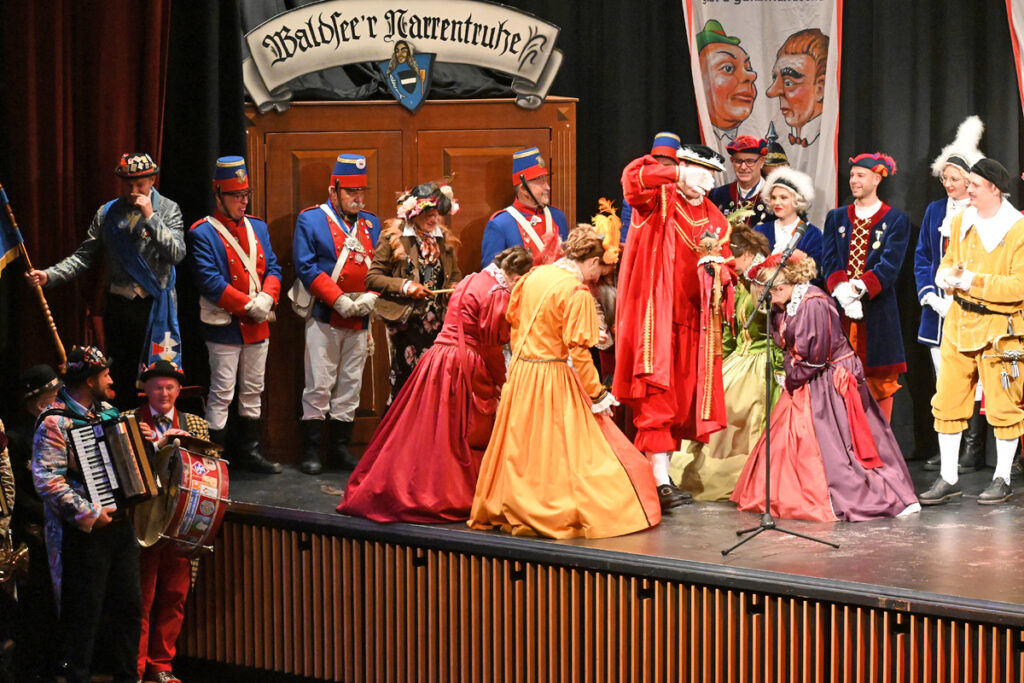 Die Bühne im Haus am Stadtsee war mit allen Narren gut belegt und es war ein schönes bunt es Bild, als sie sich einhängten zum Schunkelwalzer „und zum Schluss einen Kuss“ ganz getreulich ausführten.