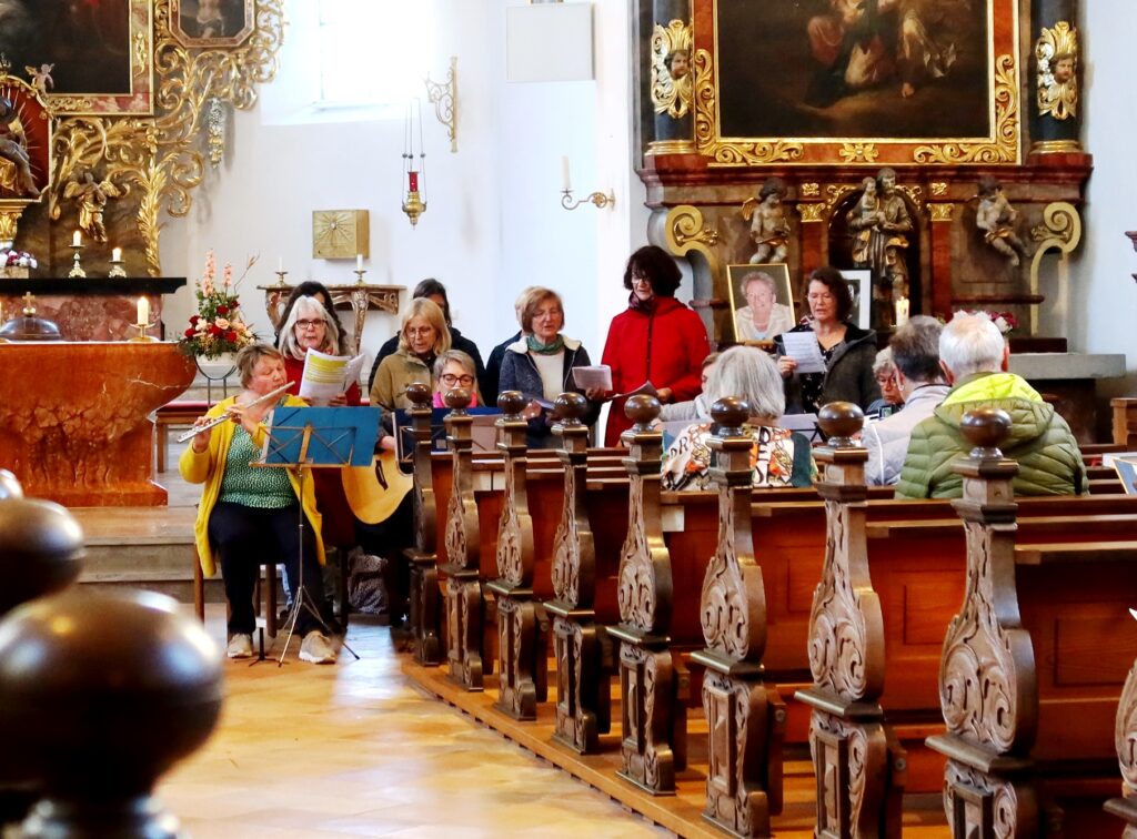 Ein Dutzend Frauen des Sing- und Instrumentalkreises Haisterkirch hatte nicht nur gesanglich und instrumental für eine berührende Andacht gesorgt. Auch Fürbittgebete der einzelnen Mitglieder gehörten dazu. Gut besucht war diese Maiandacht und das Motto „Maria, Mutter des guten Rates“ wurde mit vielen nachdenkenswerten Hinweisen dargeboten. Anregungen für offene Augen und ein weites Herz, für offene Ohren, um Gottes Stimme zu vernehmen, fanden guten Boden bei den Gläubigen. Zusammengefasst wurde die Botschaft übermittelt: „Sein Wort ist Hoffnung, sein Wort ist gut, was er Euch sagt, das tut.” Die Mutter des guten Rates wurde als Begleiterin, als Fürsprecherin, als Schwester, als eine von uns in den Mittelpunkt gestellt. Auch die gemeinsam gesungenen Marienlieder halfen mit, die Herzen für Gottes Wort zu öffnen und den Glauben zu stärken.