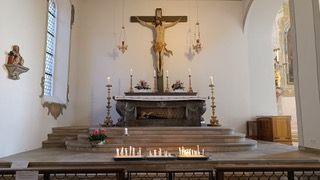 Mit einer stimmungsvollen Lichterfeier am Vorabend starteten die Feierlichkeiten bei noch erträglichen Temperaturen. Die Gut-Betha-Stele in der Dorfmitte war Ausgangspunkt für über 100 Gläubige. Schwester Birgitta formulierte hier: „Pilgern brachte schon immer Kraft und Hoffnung in schweren Zeiten, heute beten und bitten wir vor allem um ein Ende der Gräueltaten in der Ukraine und in Israel“. Zusammen mit Generaloberin Schwester Maria Hanna, Klosterpfarrer Ulrich Steck und vielen Mitschwestern zogen die Wallfahrer den mit Kerzen beleuchteten Weg in Richtung Pfarrkirche. Am Maximilian-Kolbe-Brunnen wurde gesungen und gebetet, ehe die Kirchenglocken zum Eintritt in die nur mit Kerzen beleuchtete Wallfahrtskirche einluden. Ein Doppelquartett der Seelsorgeeinheit unter der Leitung von Pfarrer Stefan Werner und Pastoralreferent Matthias Winstel am Keyboard gestaltete diese besondere Feier. Am Grab der Seligen Guten Beth wurde anschließend der Einzelsegen erteilt. Danach gab es eine Einladung zu Tee und Zopfbrot.