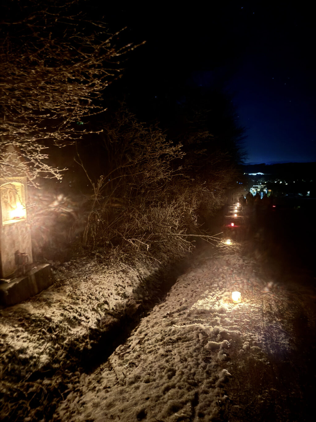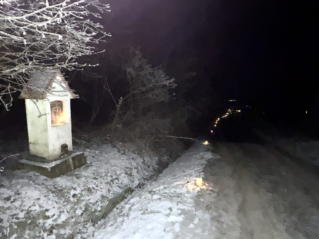 Auch heuer bekundeten die „Lichterweg-Besucher“, darunter zahlreiche Familiengruppen, dass sie sehr dankbar sind für dieses außergewöhnlich Angebot zum Jahresende. Auch Kleinkinder, gezogen oder geschoben in Wägelchen auf dem stets ansteigenden Weg waren dabei. Alle Gekommenen waren beeindruckt von dem gebotenen Lichtermeer am Wegesrand und in der Kapelle und dies dazu unter einem klaren Sternenhimmel.