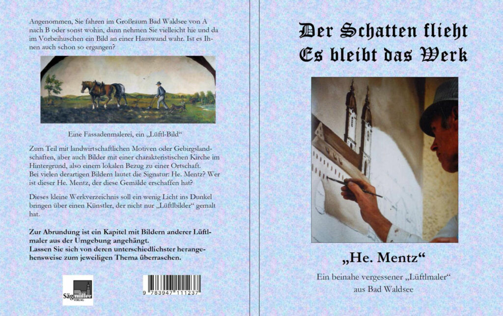 Bergatreute (rei) – Der Heimatforscher Paul Sägmüller aus Bergatreute hat eine Broschüre über Herbert Mentz herausgebracht. Mit dem 48-seitigen Werk erinnert er an einen im Raum Bad Waldsee und darüber hinaus wirkenden Lüftl-Maler. He. Mentz – diese Signatur kann man da und dort an Hauswänden am Rande eines Gemäldes lesen. Aber die wenigsten wissen, wer sich hinter dem Namen verbirgt. Sägmüller kommt das Verdienst zu, den Maler aus der Vergessenheit geholt zu haben. Mehr noch: Er würdigt ihn mit einem Werkverzeichnis. Lassen wir den tüchtigen Heimatforscher selber zu Wort kommen; Sägmüller schreibt: