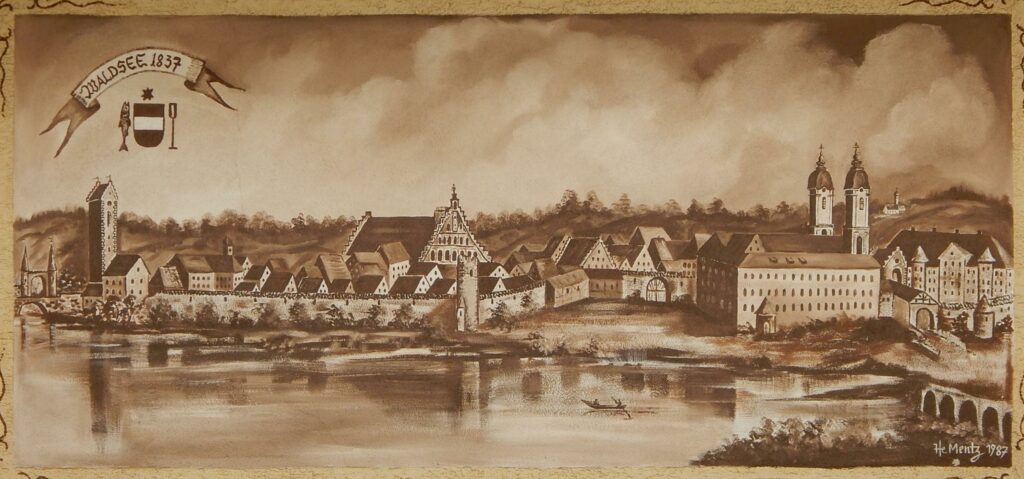 Historische Stadtansicht von Waldsee (Bad Waldsee, 1987), entstanden exakt 150 Jahre nach dem Original. Foto: Paul Sägmüller