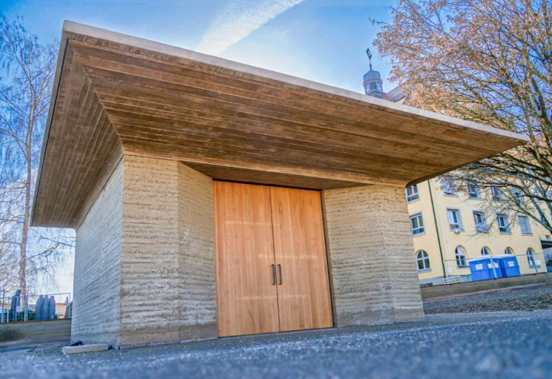 Eigene Erfahrungen mit dem Lehmbau haben die Franziskanerinnen von Reute gemacht. Die neue Aussegnungshalle auf dem Klosterfriedhof wurde im November 2023 eingeweiht. Der Lehmbau, der vom Büro Braunger Wörtz Architekten aus Blaustein entworfen und vom Lehmbaupionier Martin Rauch aus Vorarlberg umgesetzt wurde, ist seither auch ein Anziehungspunkt für viele Architekturinteressierte.